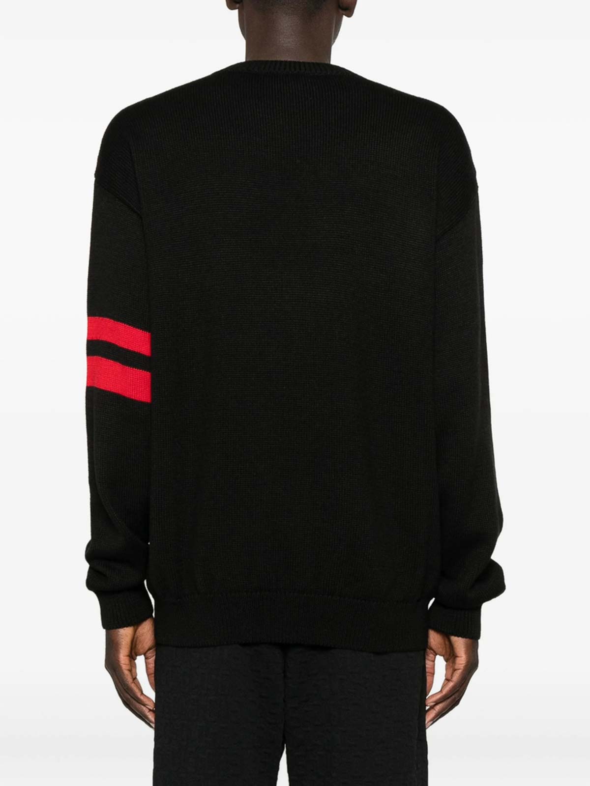 ブラックロゴディテールストライプディテールラウンドネック長袖リブ編みカフス