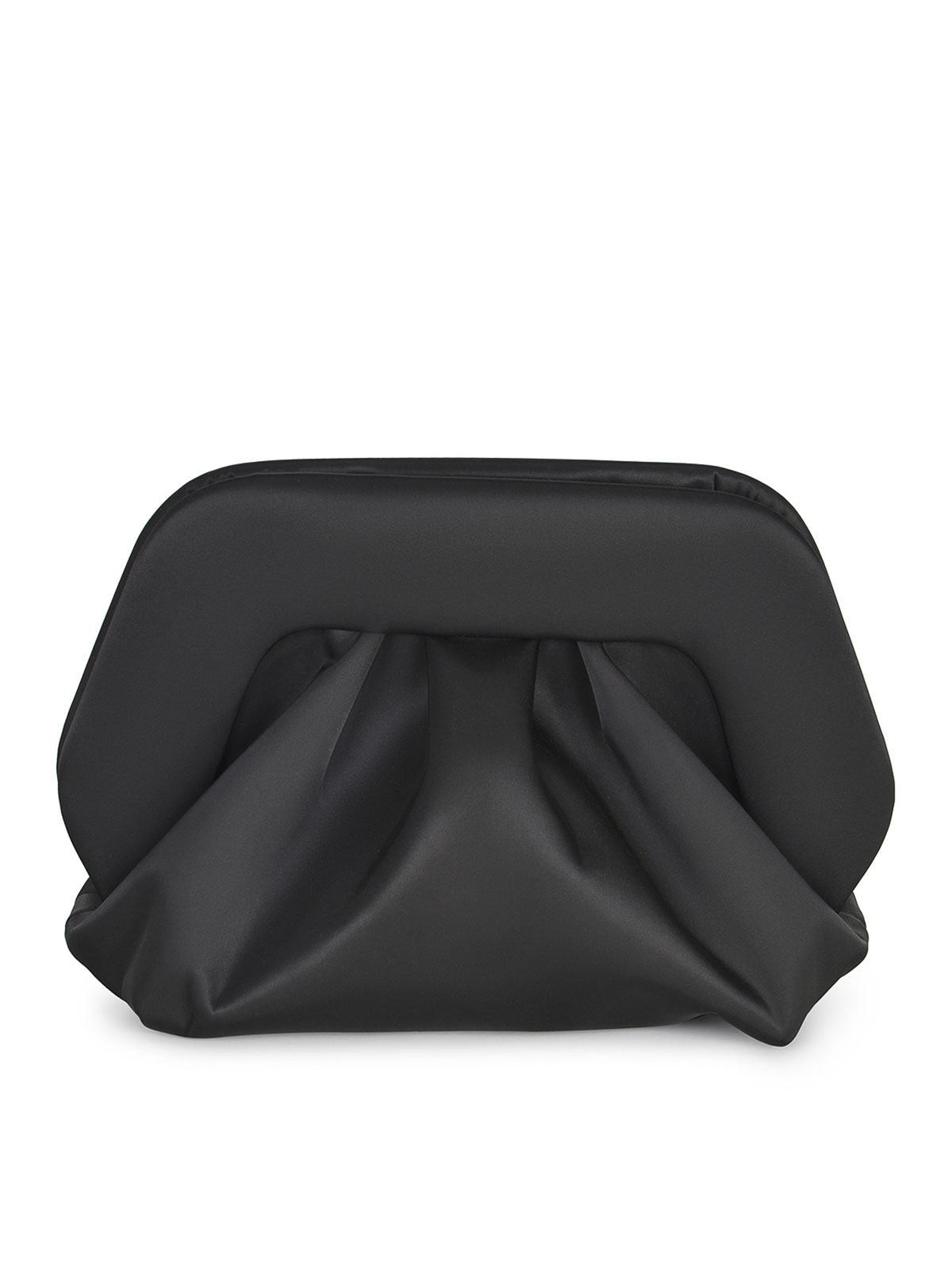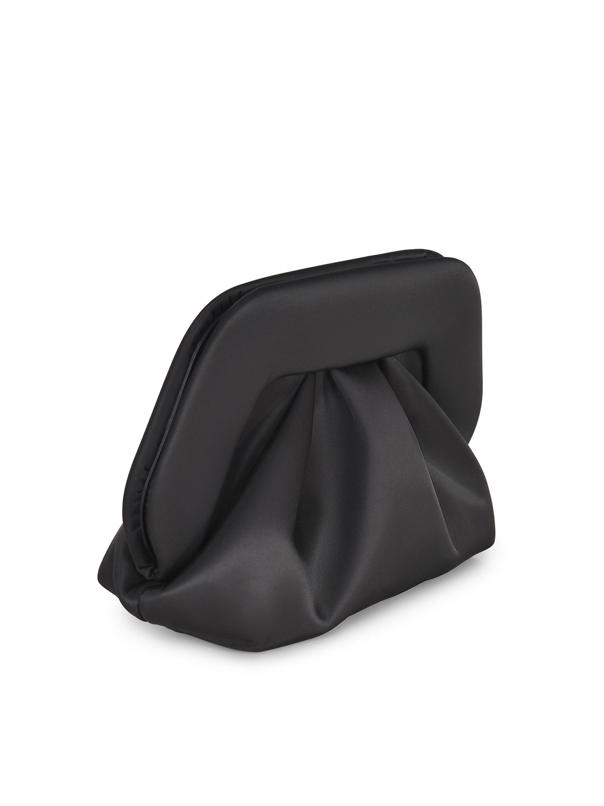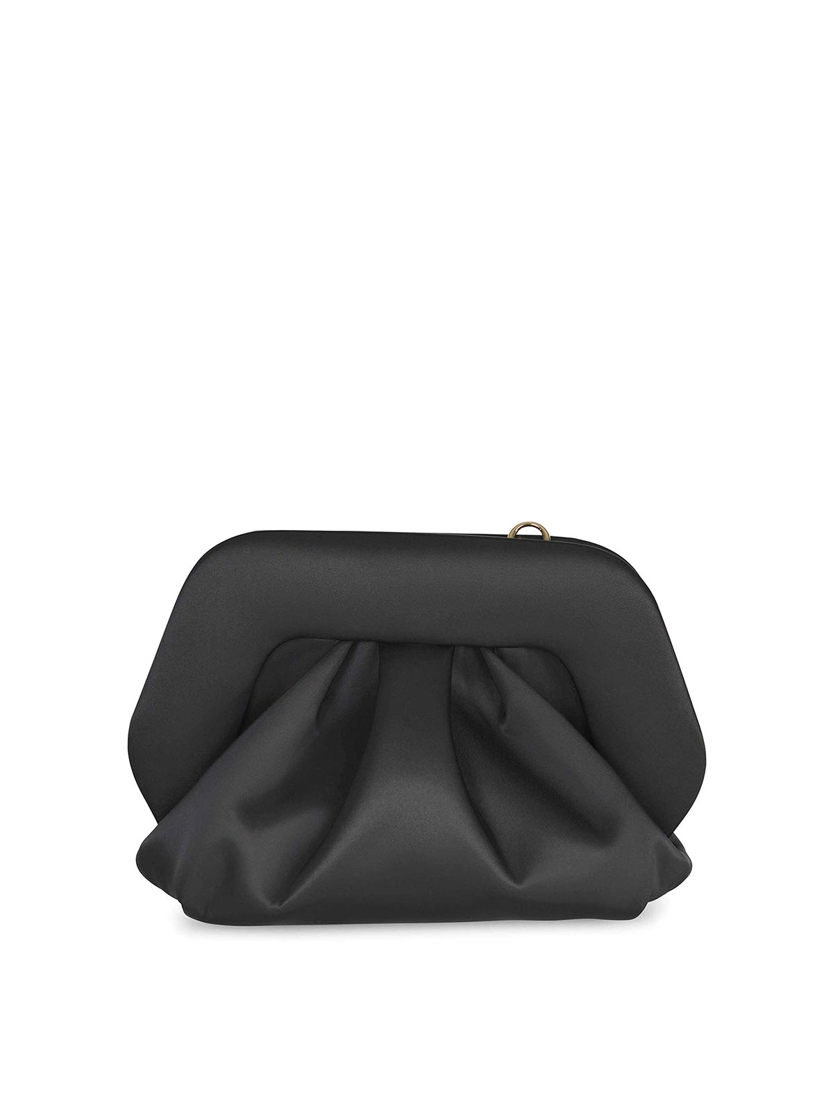 Themoir Geaバッグはブラックサテン製。サテン仕上げ。リサイクル素材で環境にやさしい素材で作られています。フリルのディテール。取り外し可能で調節可能なショルダーストラップ。マグネットクロージャー。裏地はオーガニックコットン。ゴールドトーンの金属製金具。寸法:高さ15cm x 幅22cm x 奥行き10cm 100% PUイタリア製