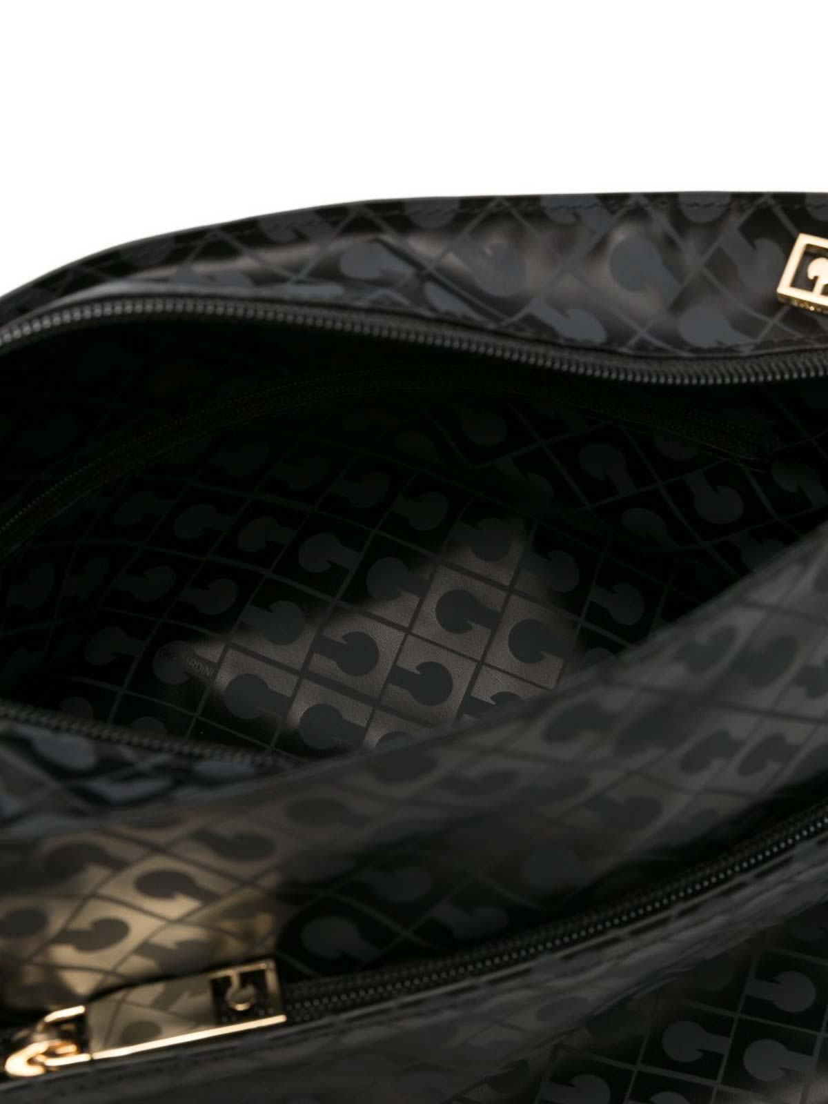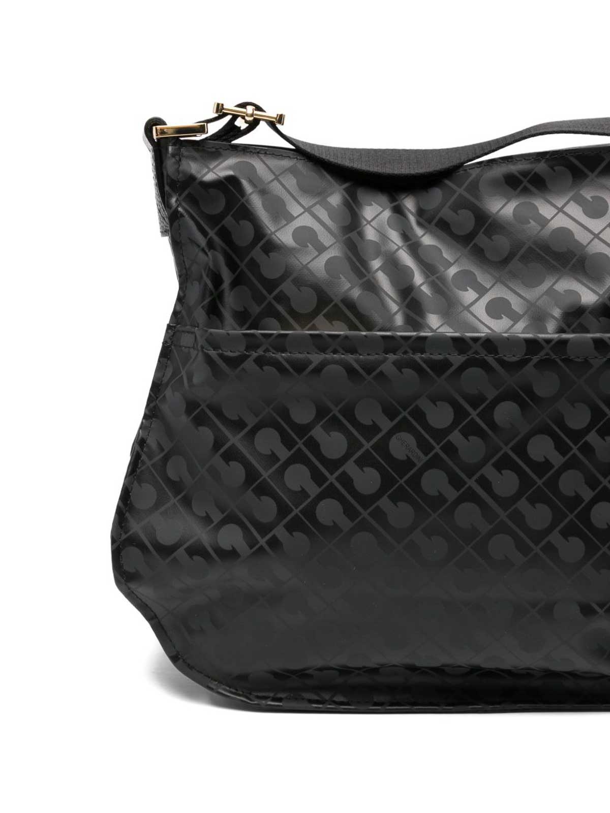 ブラックモノグラム柄アジャスタブルショルダーストラップジップフラップ