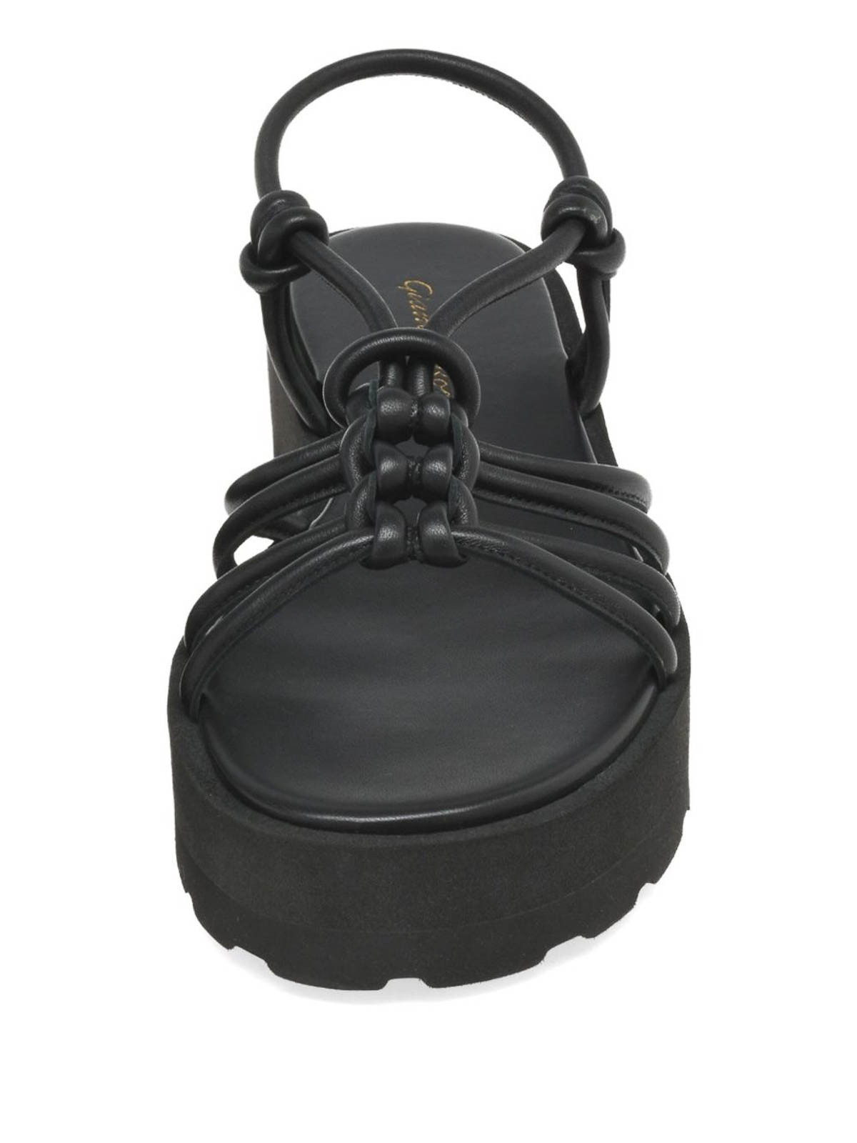 ブラックブランドの中敷きフラットフォームアンケージデザインノットディテール