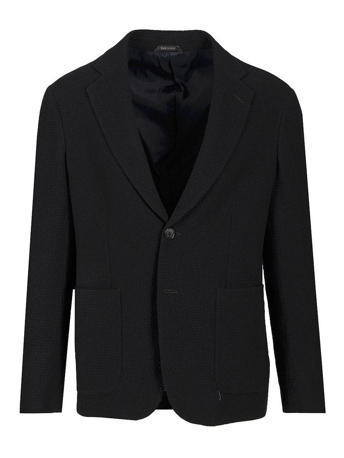 シングルブレストジャケットノッチラペルカラーシングルブレストクロージャー、ボタン2つ付き、裏地付きパッチポケット2つ