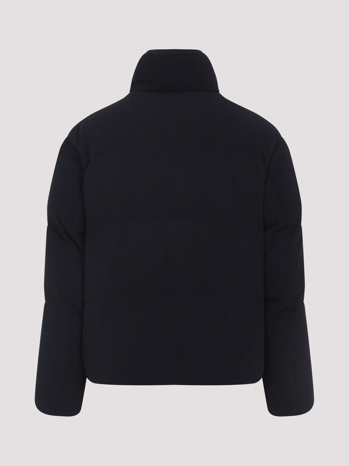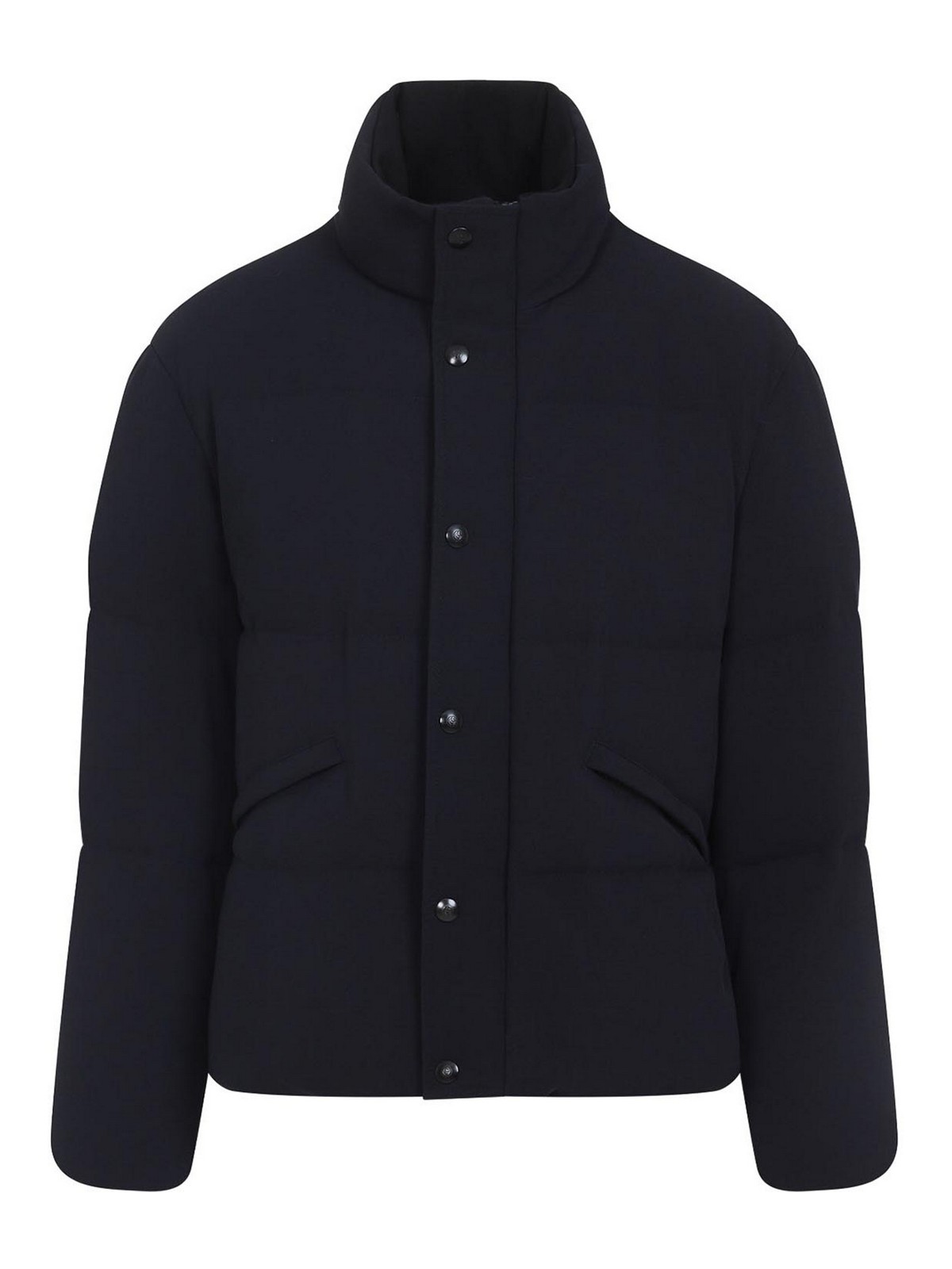 Giorgio armani ダークブルーのジャケット。ダークブルーとギャバジンのキルティング模様。スタンディングカラー、スナップボタン、隠しファスナー、ファスナー付きポケット2つ、長袖、隠しリブカフス、裏地付き。
