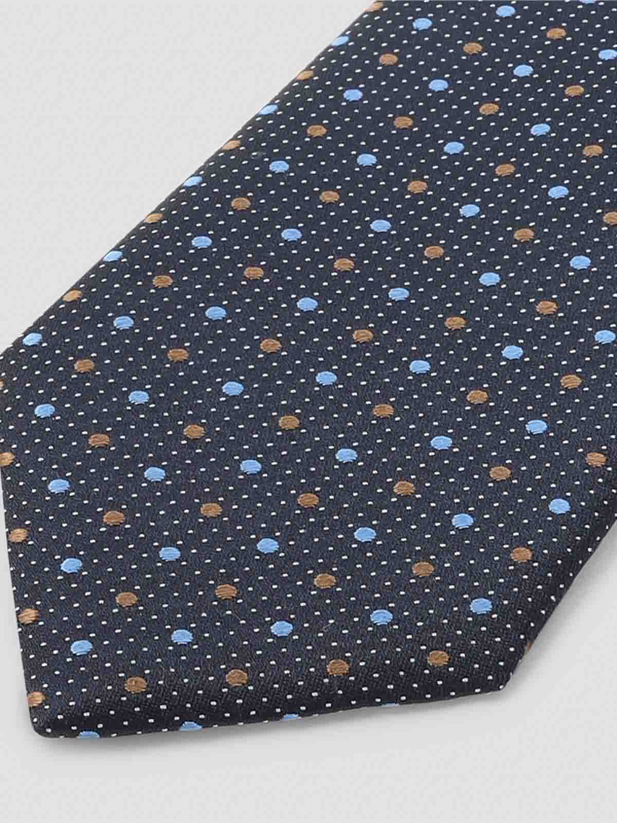 ジョルジオアルマーニシルクタイ。全体にジャカードポワ柄のブルーシルク製。内側にロゴラベル。