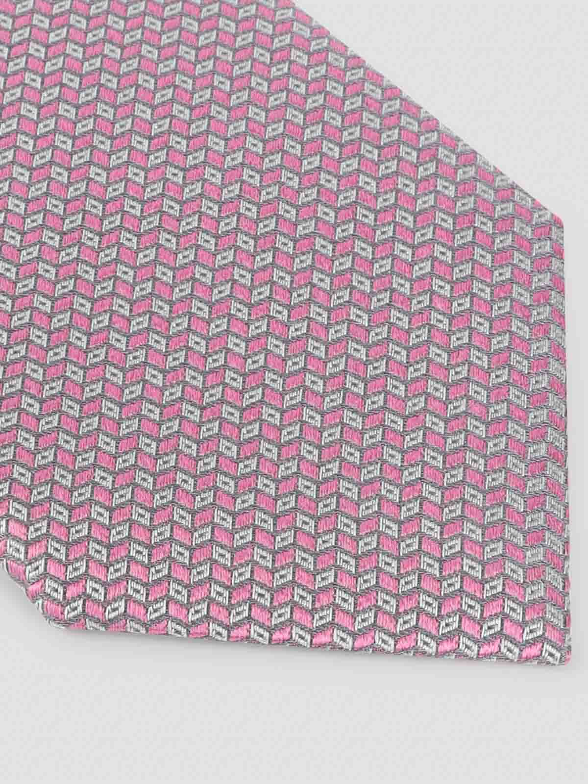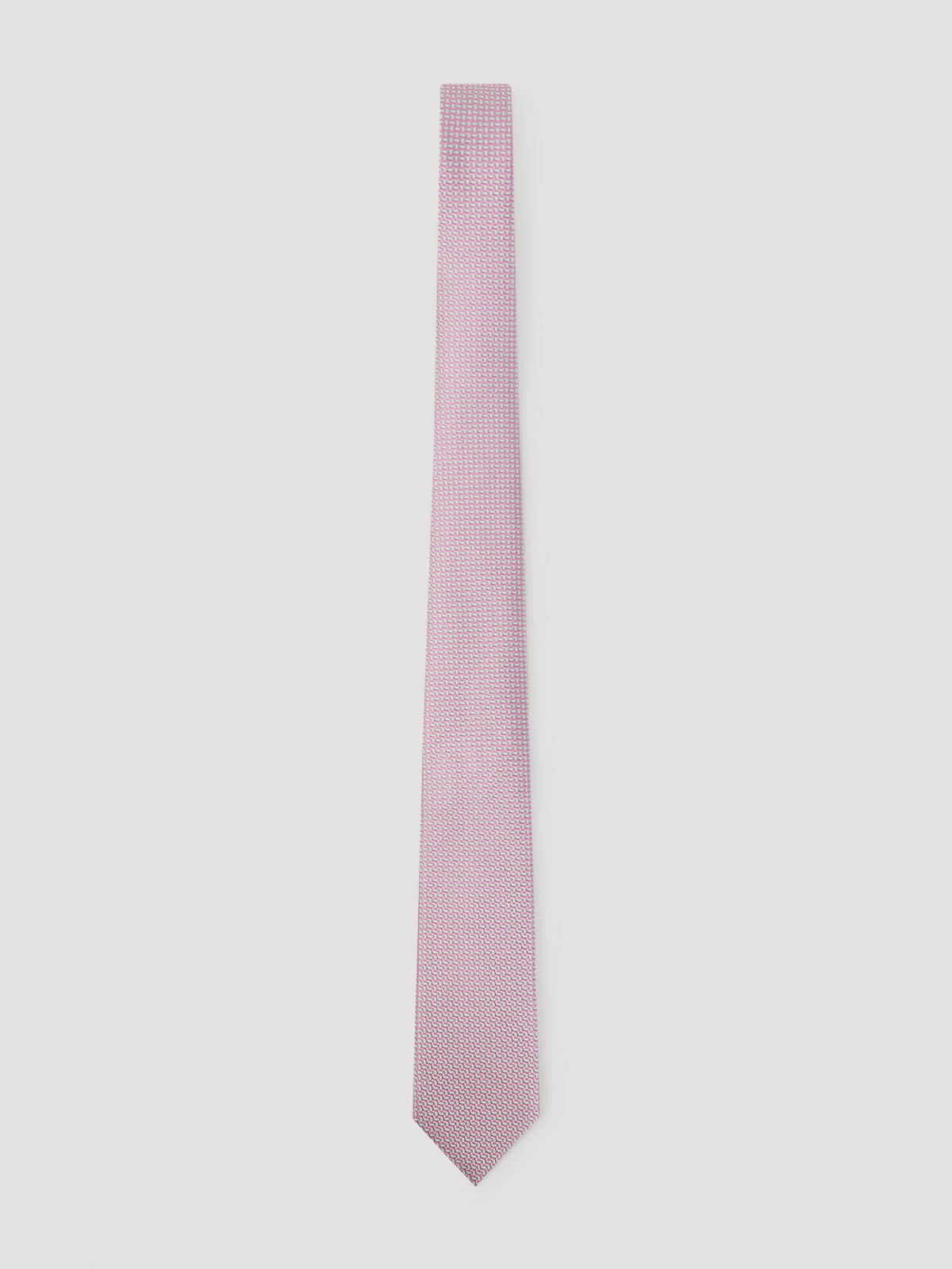 ジョルジオアルマーニピンクのシルクタイ。全体にジャカード模様のピンクのシルク製。内側にロゴラベル。