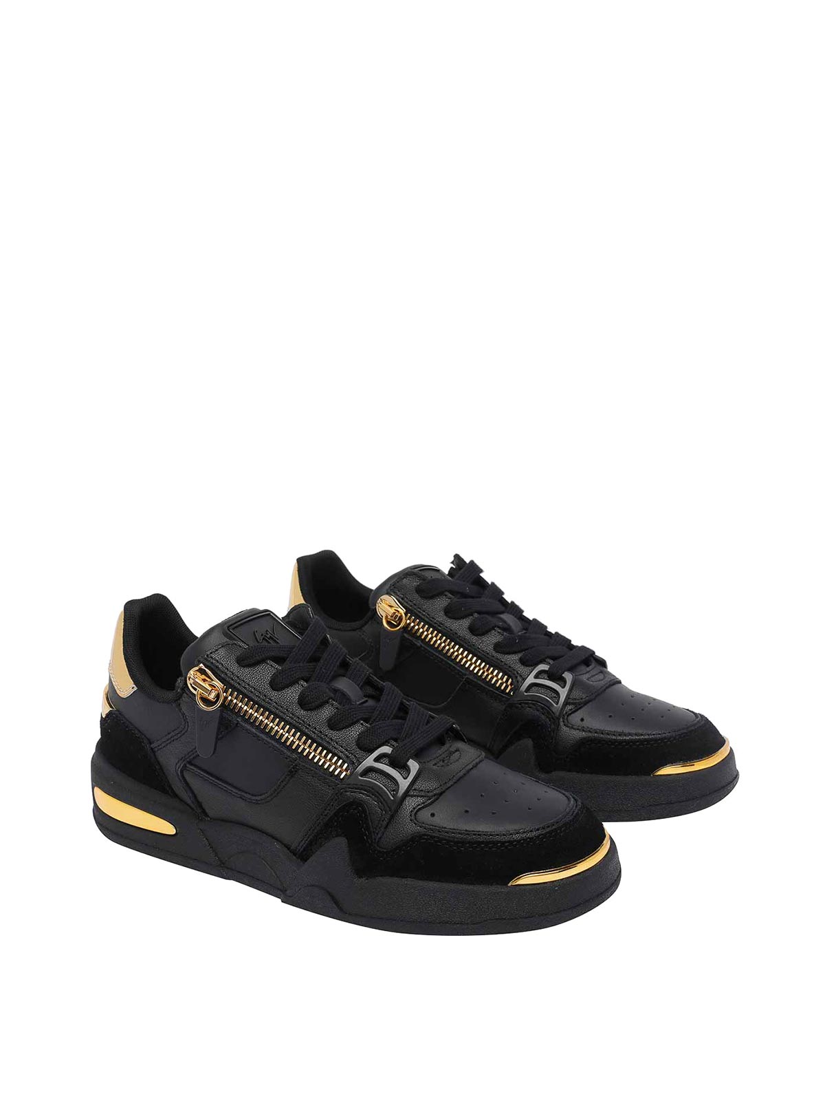 ジュゼッペ・ザノッティ GZ ゴーストスニーカー、レザーアッパー、ラバーソール、ゴールドディテール、ジッパー