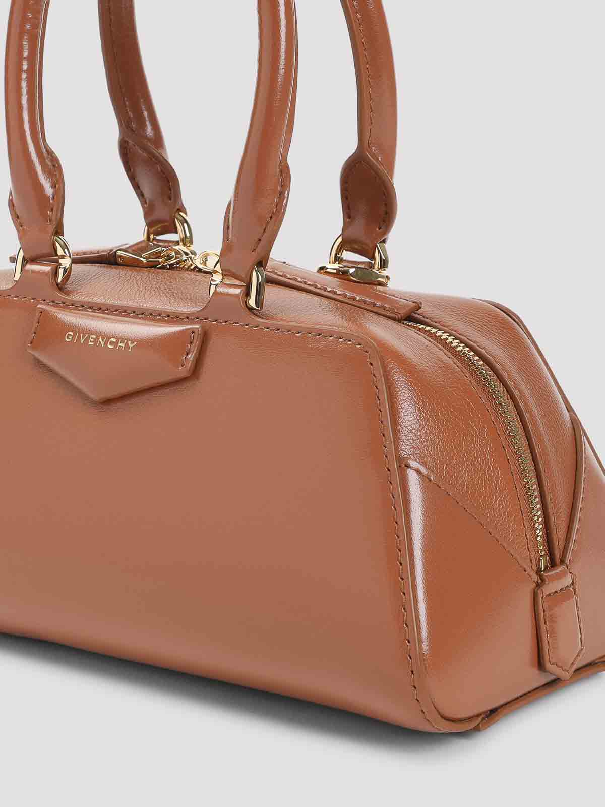 Givenchy キャラメルブラウンアンティゴナイーストウエストミニバッグピュアキャラメルブラウンハンドバッグトップハンドルトップ2ウェイジップトーナルパッチロゴ入りトーンレタリングロゴ調節・取り外し可能なショルダーストラップメインコンパートメント1つ、トーンハードウェア