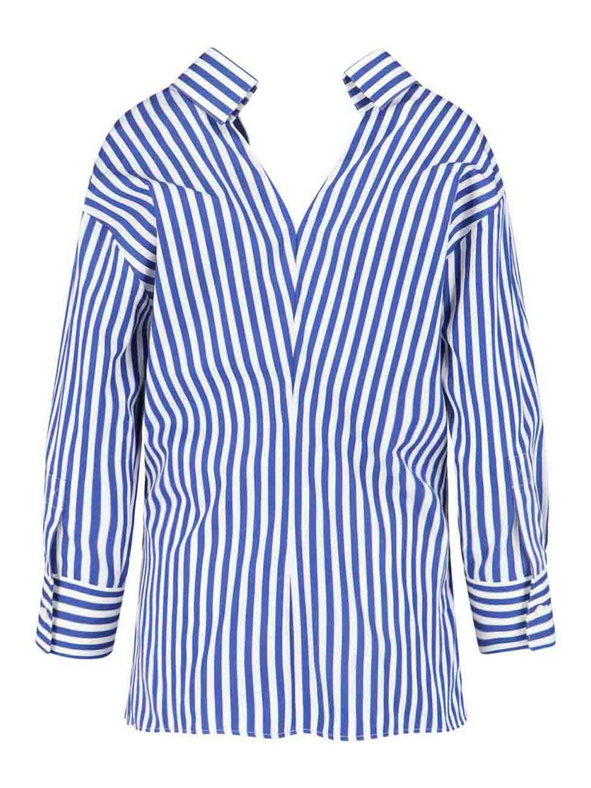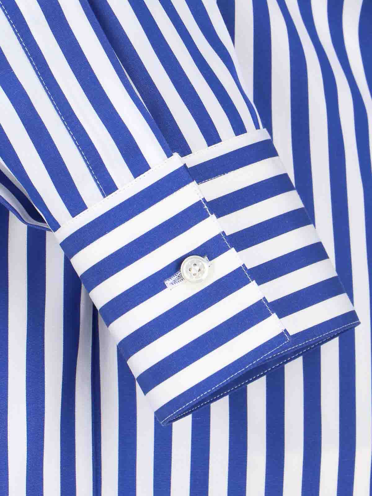 ジバンシィコットンポプリンシャツ、ブルー、Vネックストライプ柄、襟、ボタン留め、ボタンカフス、ストレートヘム。