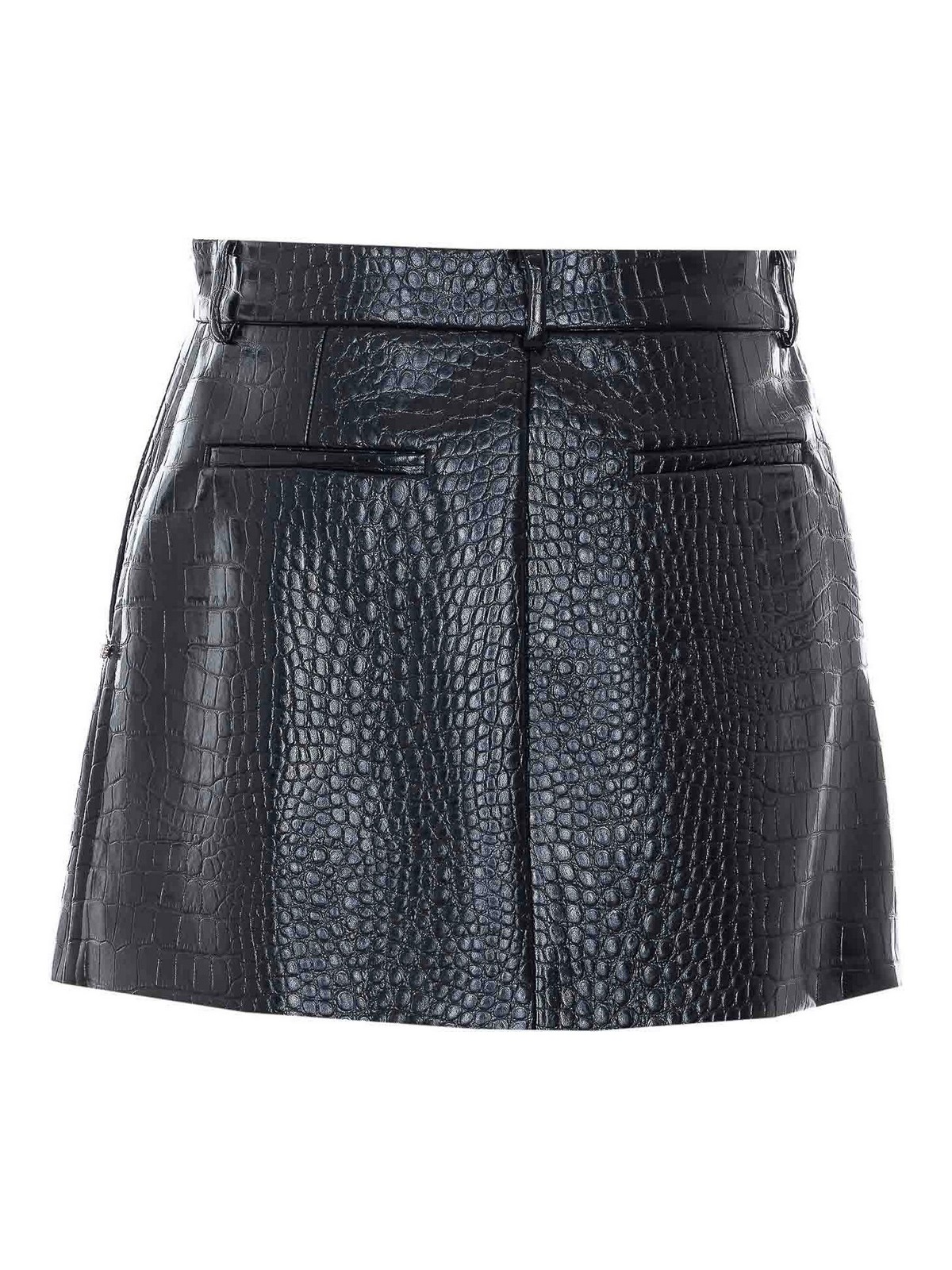 スポーツマックスブラックグレバスカート、ボタンとジップクロージャー、サイドポケット、クロコダイルプリント、ミニモデル