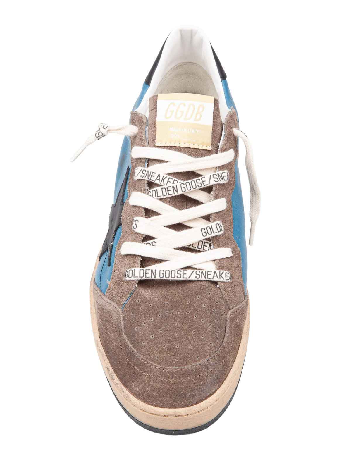 Golden Goose Ball Star スニーカー、スエードとブルースター製で、穴あきビンテージエフェクトのヒールタブとレースなどが施されています。