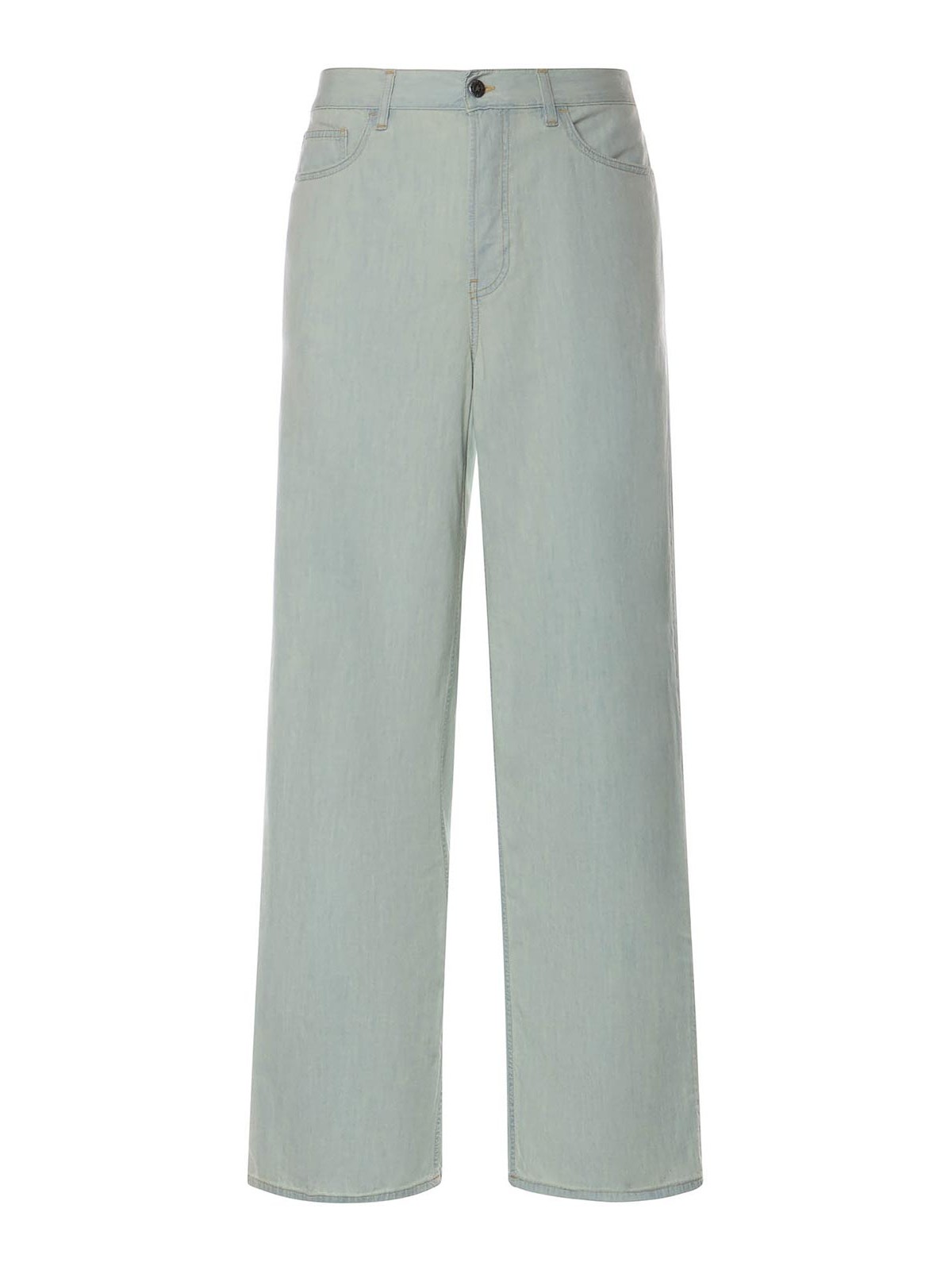 純綿製、ベルトループ、ワイドレッグ、リラックスフィット、表示サイズは32、イタリア製、色:ライトブルー