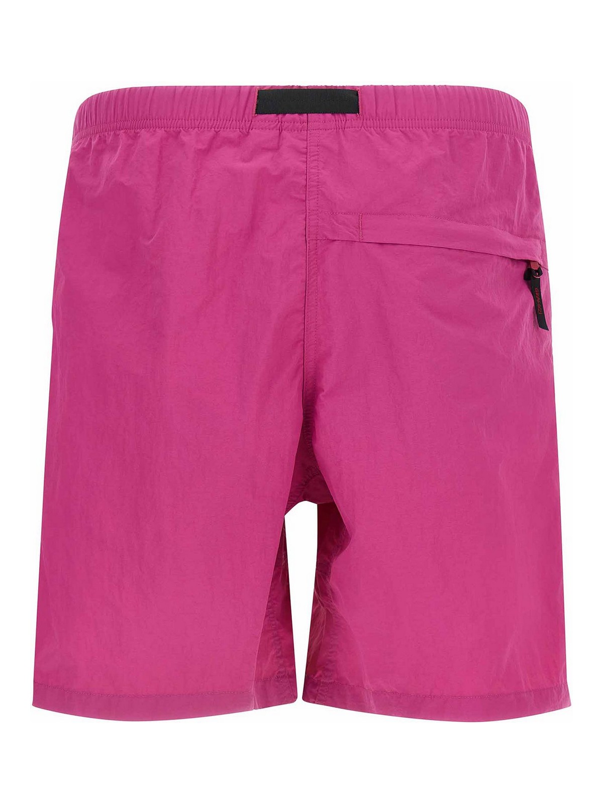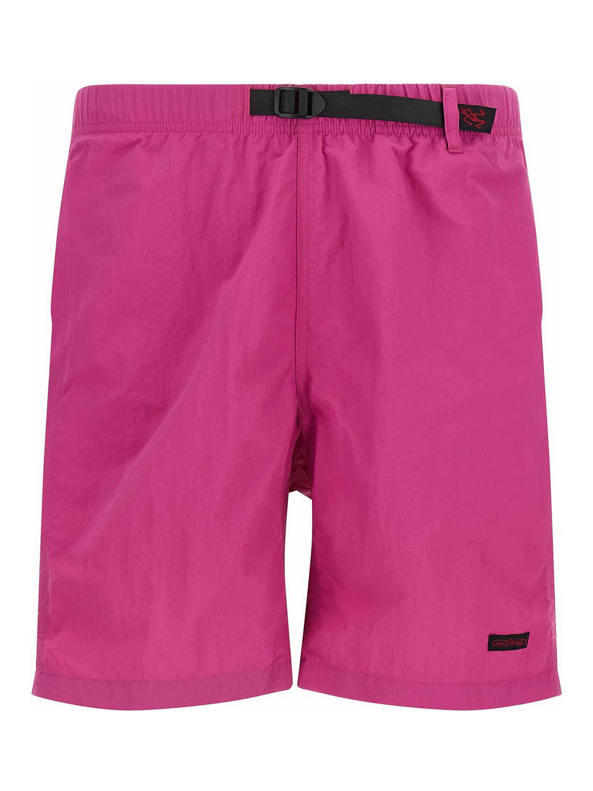防水仕上げの速乾性軽量ナイロン「g-short」バミューダショーツ、調節可能なテープコード付き一体型ベルトシステム、補強クロッチ、ポケット、裾のサイドスリット。内蔵ポケットに収まる折りたたみ式デザイン。