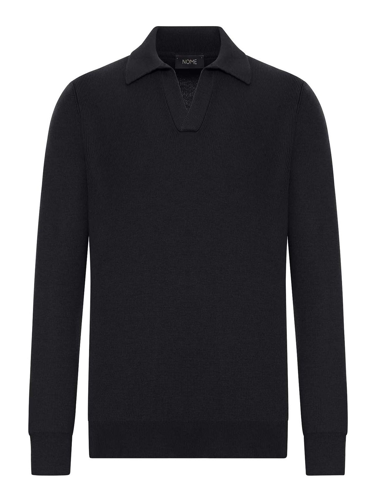 クラシックカラー、V、ネック、ロングスリーブ、リブ編みの袖口と裾、-、カラーブラック