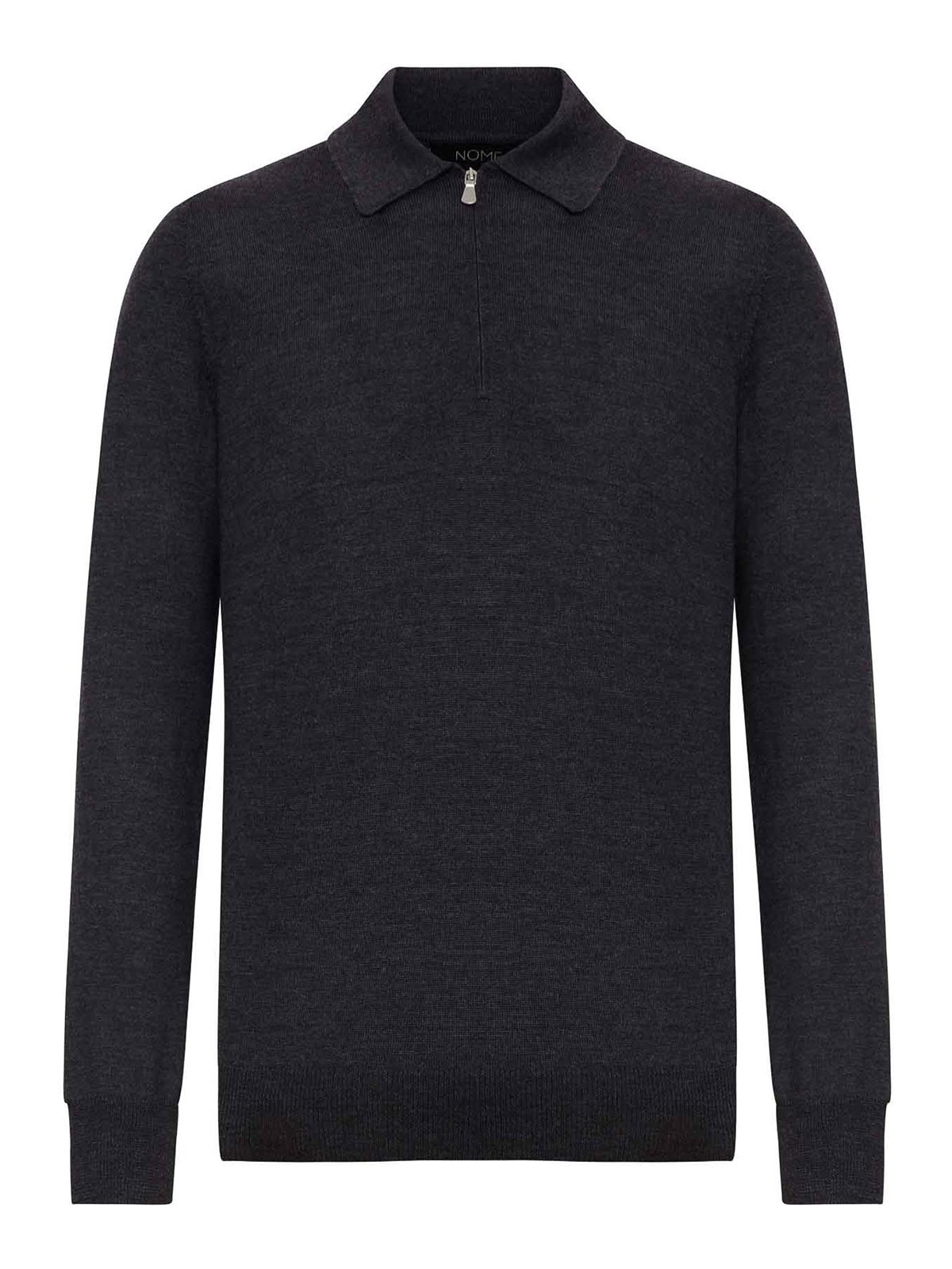 ジッパー、アップポロ、クラシックカラー、ロングスリーブ、リブ編みの袖口と裾、-、カラーブラック