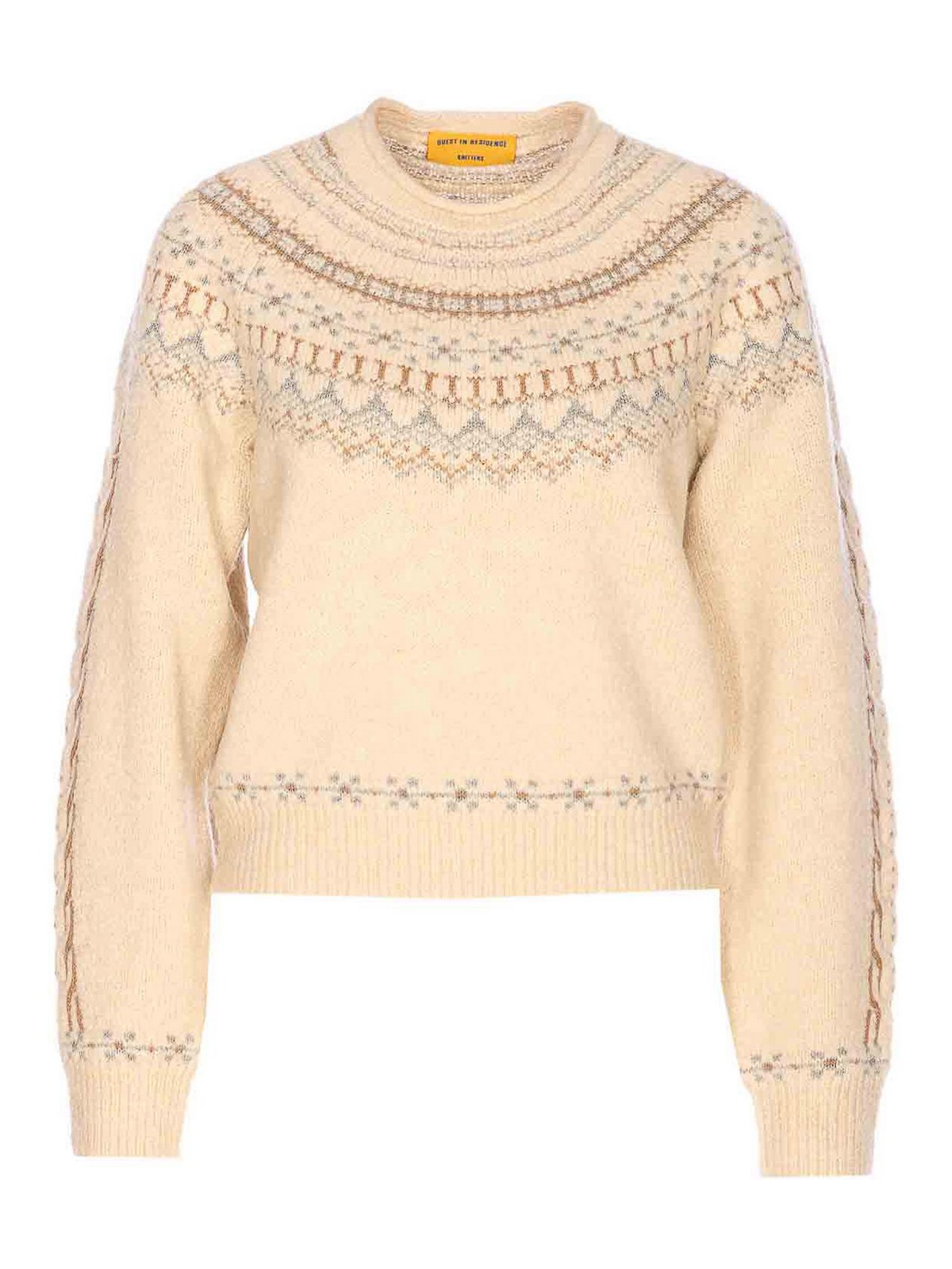 ゲスト・イン・レジデンスホワイト・クラウド・シャレー・セーター、クルーネック、柄入り、刺繍