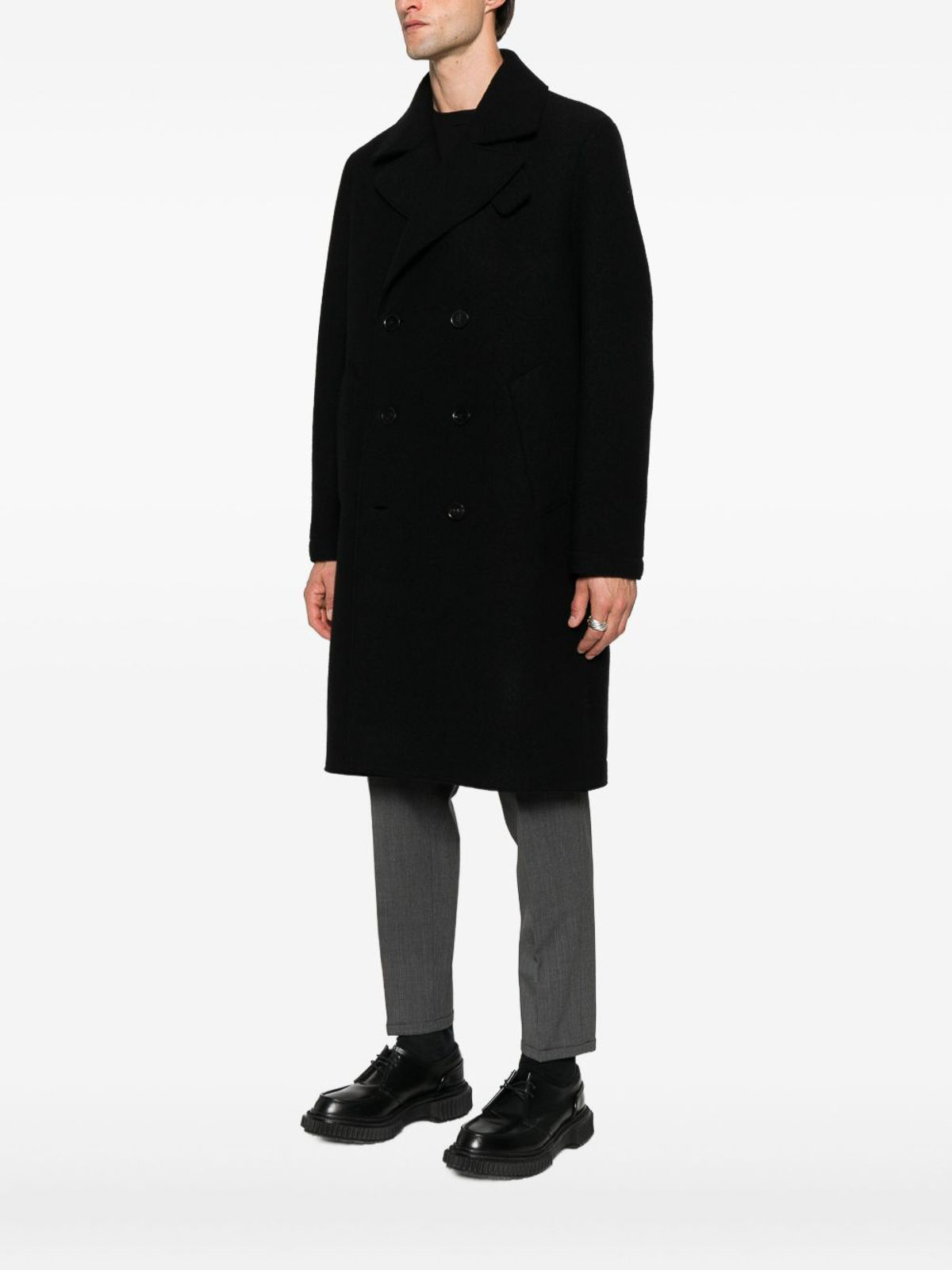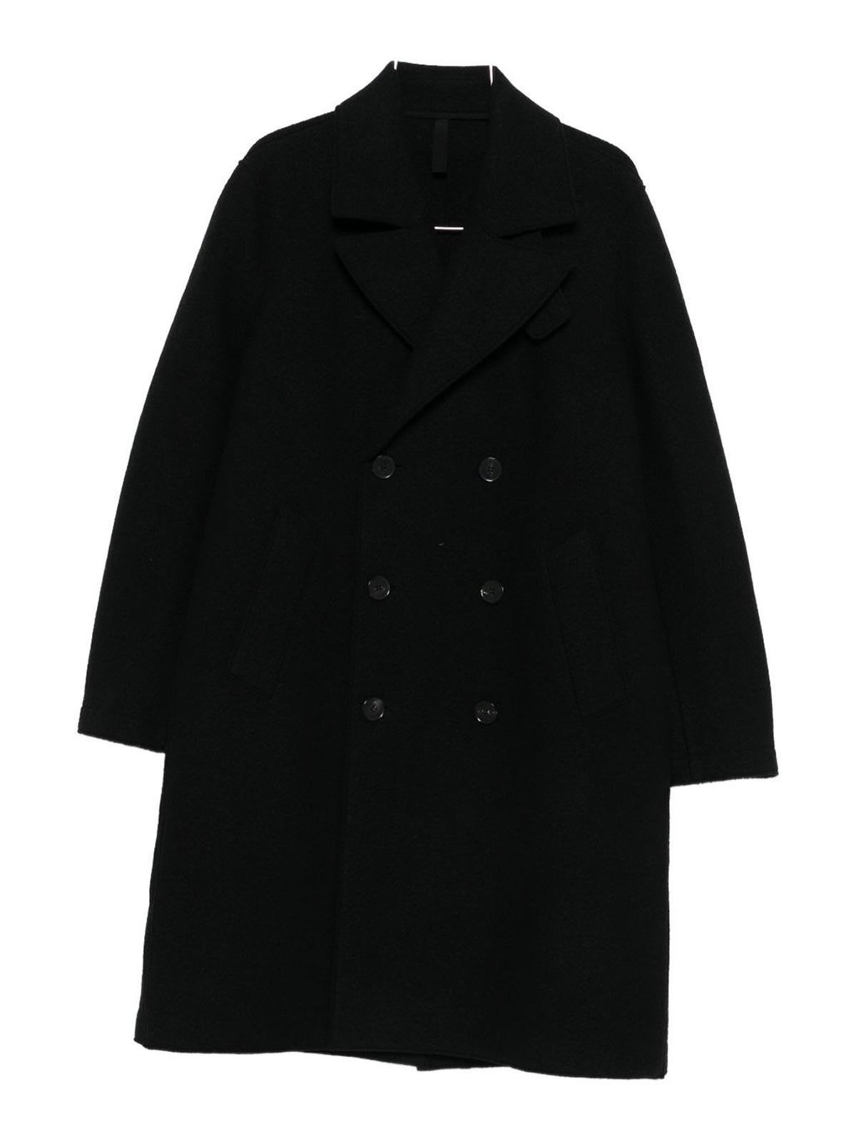 ブラックダブルブレストピークラペルロングスリーブウェルトポケット