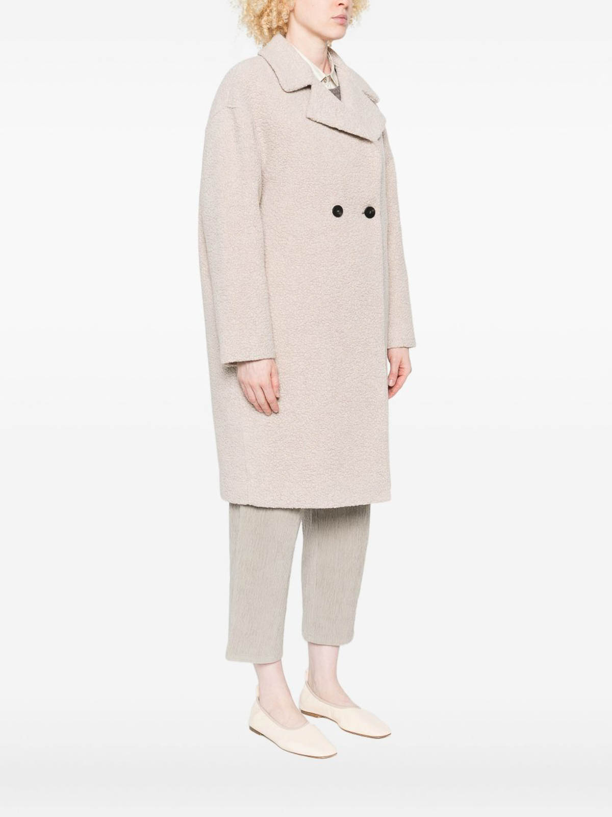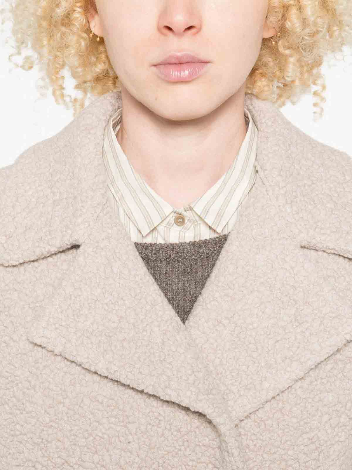 ベージュのブークルテクスチャーダブルブレストノッチドラペルロングスリーブストレートヘム