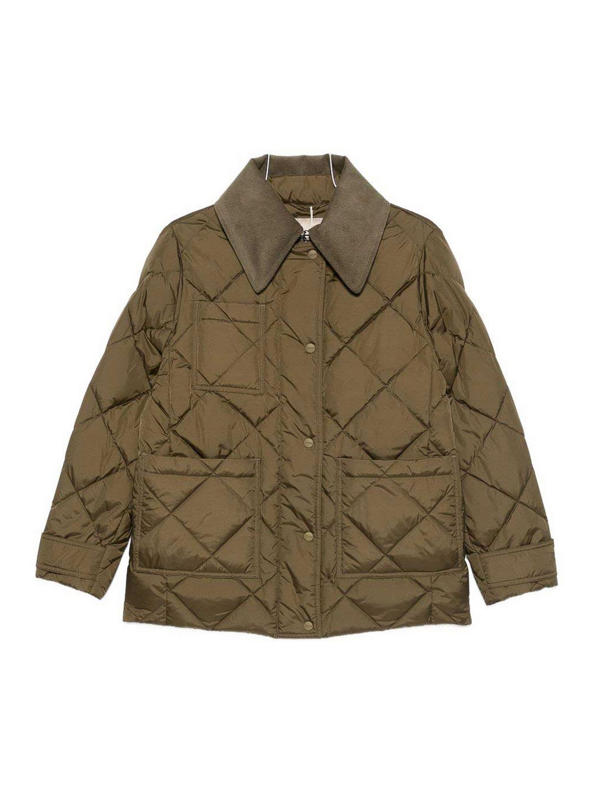 グリーンキルトウェルトポケットコーデュロイカラーボタンロングスリーブ