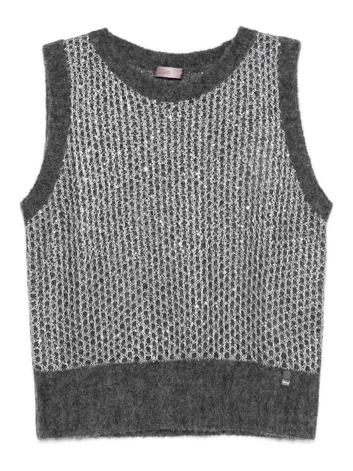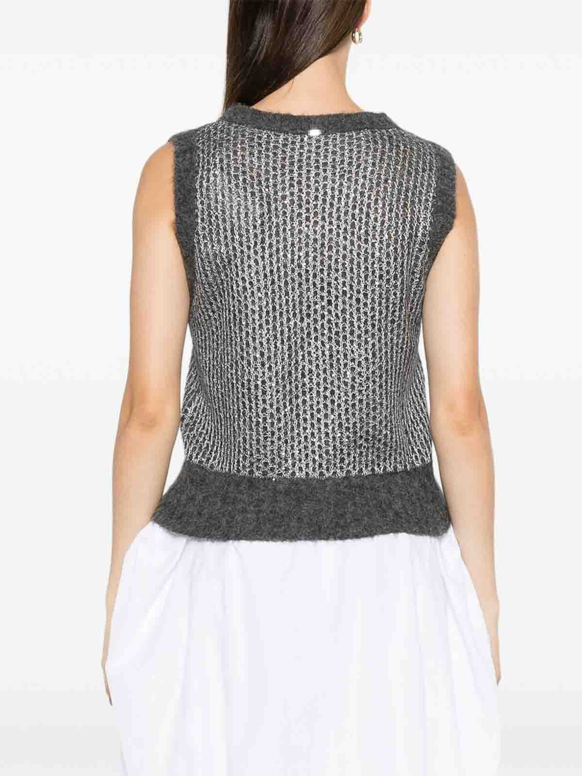 グレーニットノースリーブラウンドネッククロップドストレートヘム