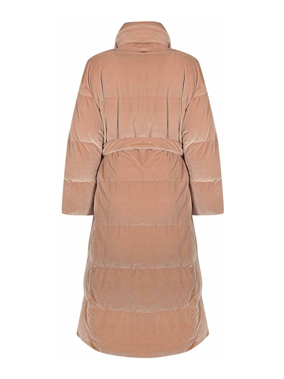 ベルベット、ルックローブデザイン、キルティングカラー、ロングスリーブ、ベルトパッド入り