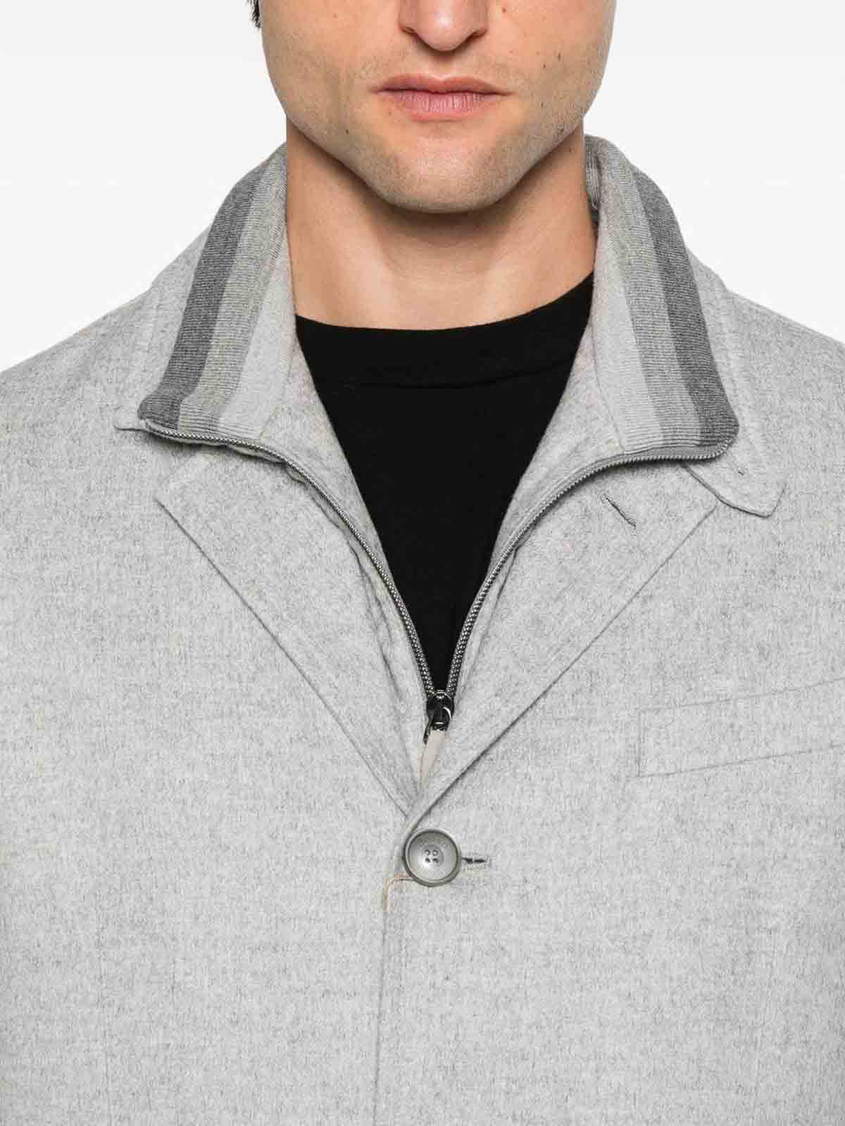 Origin Italyは、グレーの3ボタンクラシックラペル、フラップポケット、長袖が特徴です。
