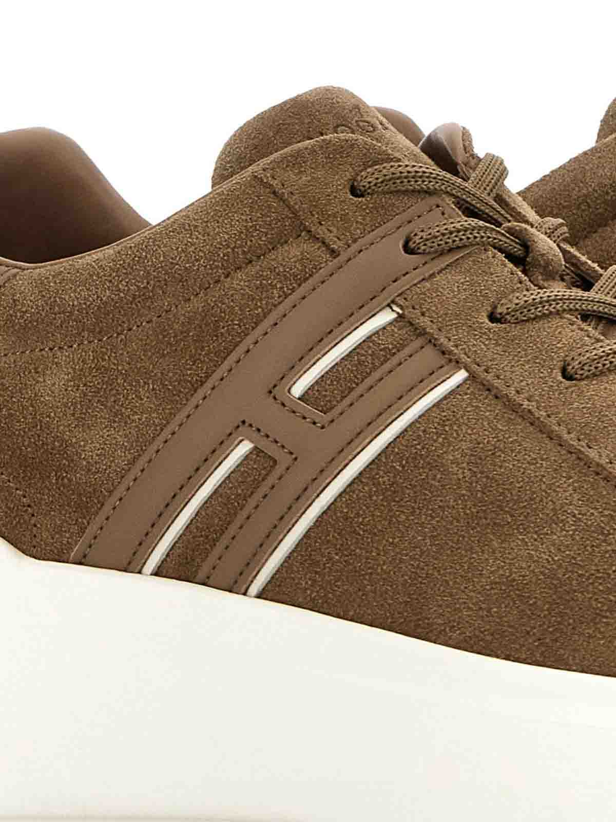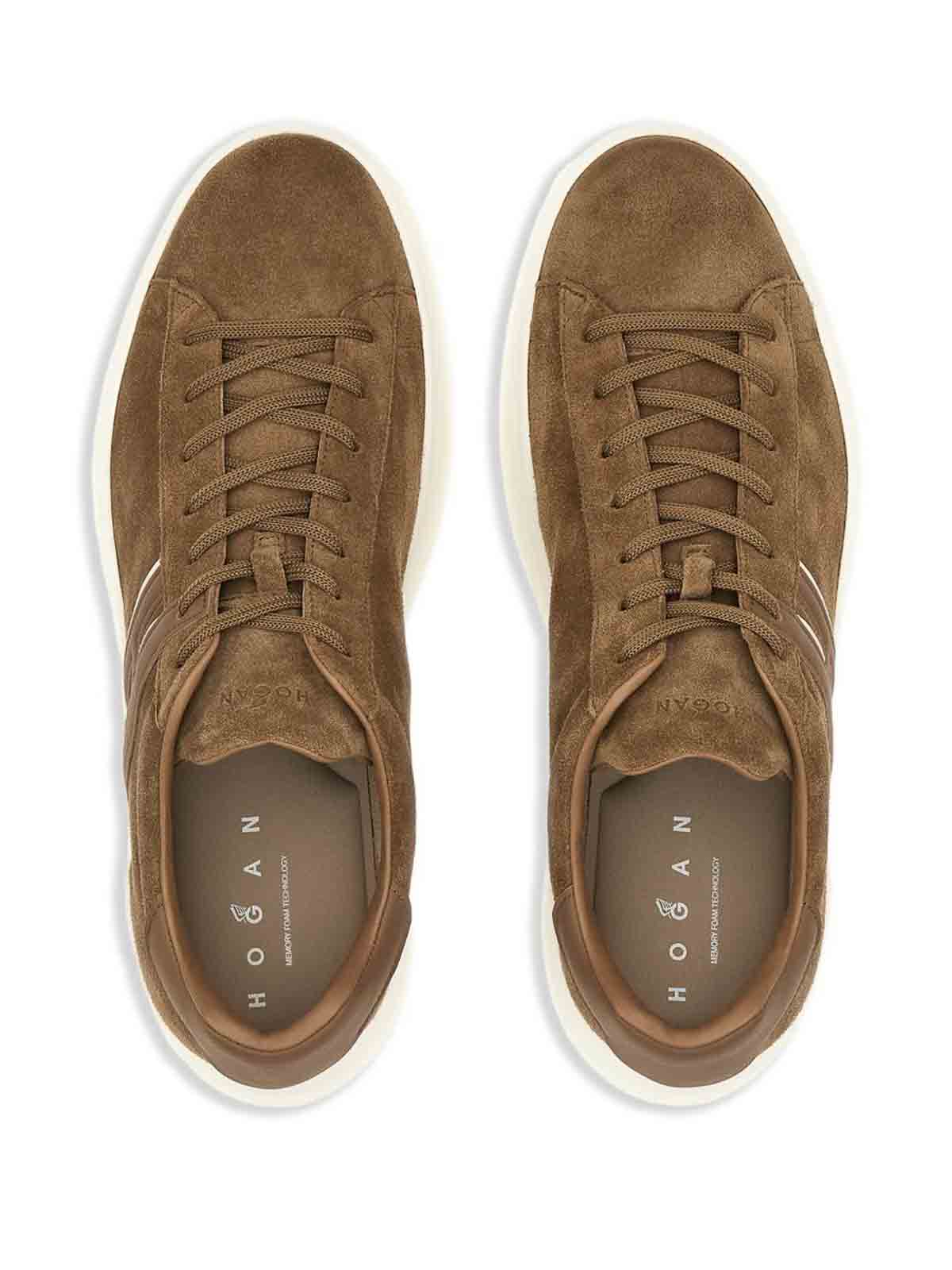 アースブラウンのレース、アップリケのコントラストの効いたロゴ入り低反発素材を使用