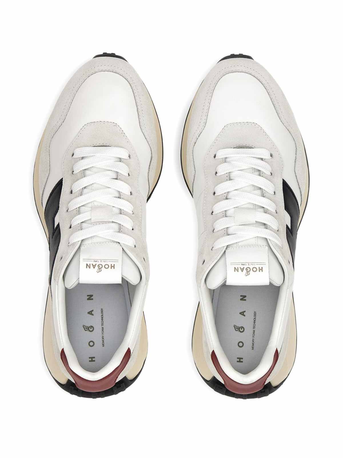 ホワイトロゴアップリケパネルデザインレースアップ留めラウンドトゥラグソール