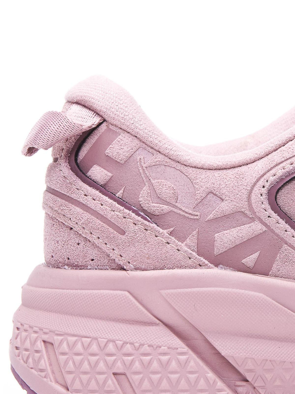 Hoka Pink U clifton L スニーカー、レースクロージャー、サイドロゴ、レザーとスエードのアッパー、ラウンドトウ