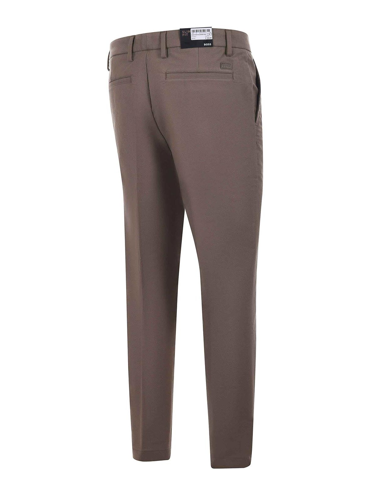 ボスコットンツイルパンツ。斜めポケット。背面にウェルトポケット。ベルトループ。ファスナーとボタン留め。スリムフィット。表示サイズ:34 (イタリアサイズ48の場合は+14) コットン 51%、モーダル 47%、エラステイン 2%