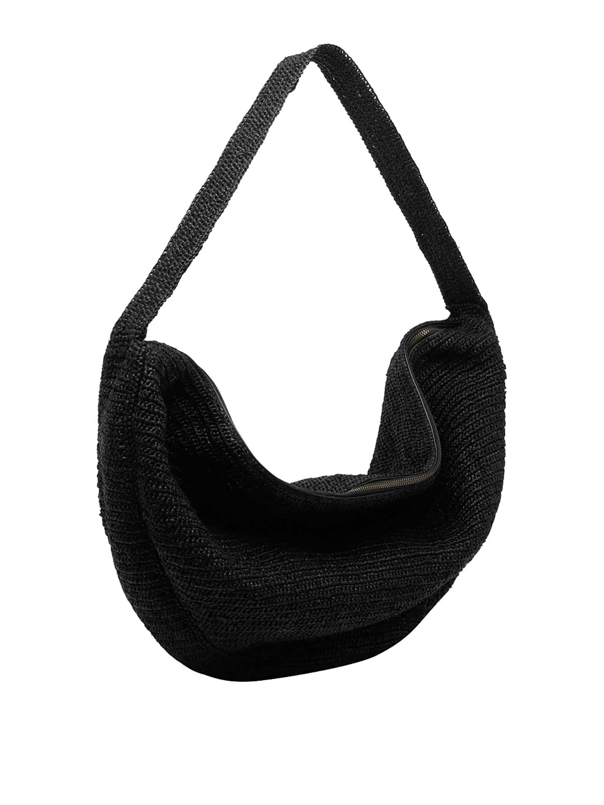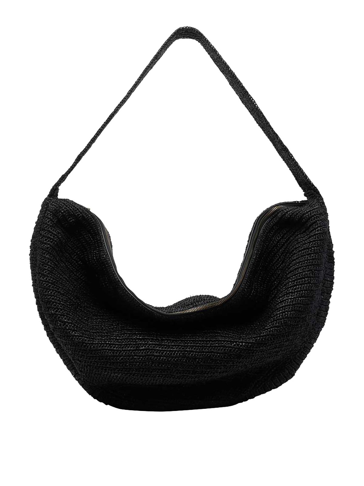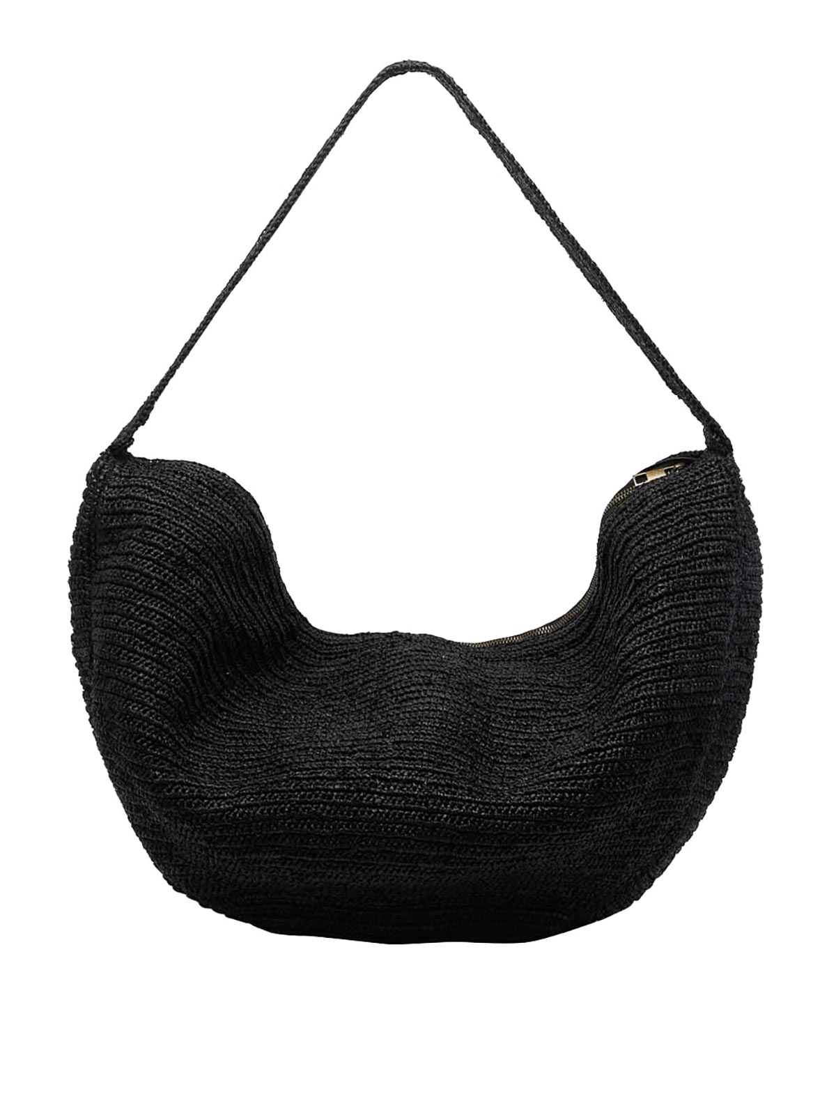 Ibeliv ブラックバイブショルダーバッグ、ファスナー開閉、内側にオープンポケット、ショルダーストラップ