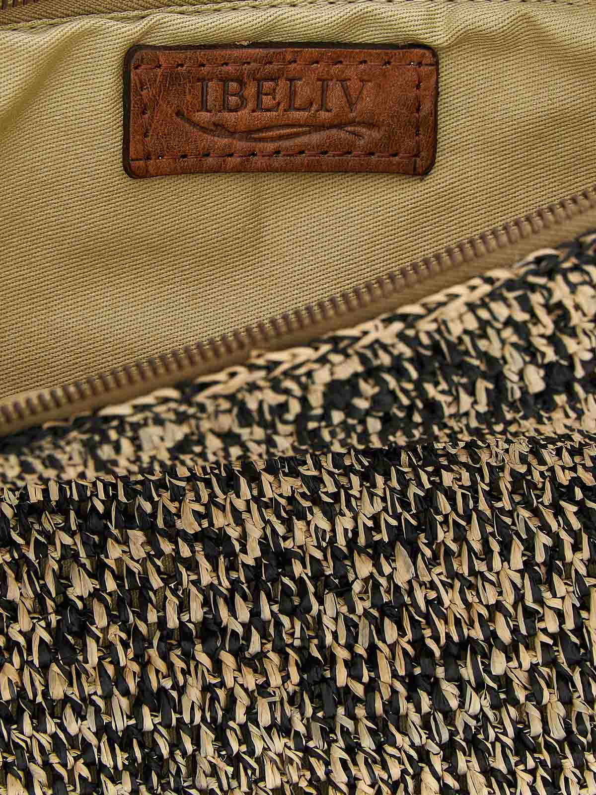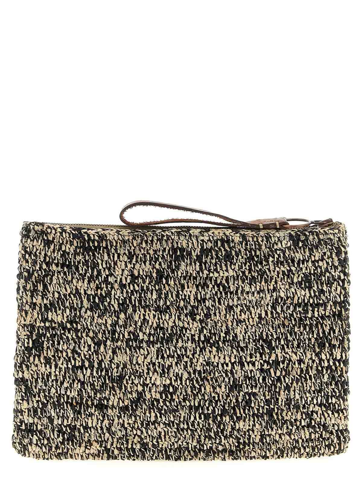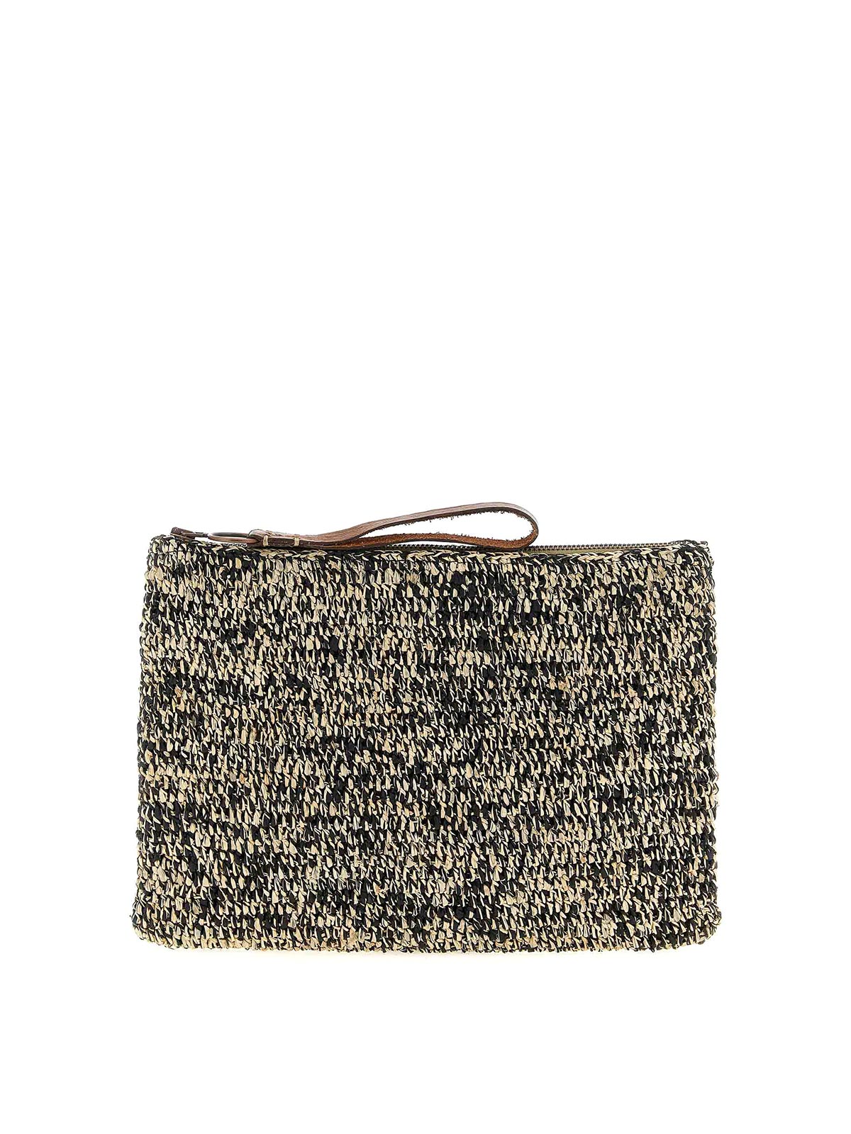 ツートンカラーのかぎ針編みのラフィアのAmpy'クラッチバッグ、レザーハンドル、ファスナー付き。手作りの製品で、どんな欠陥もユニークさの特徴とみなされます。