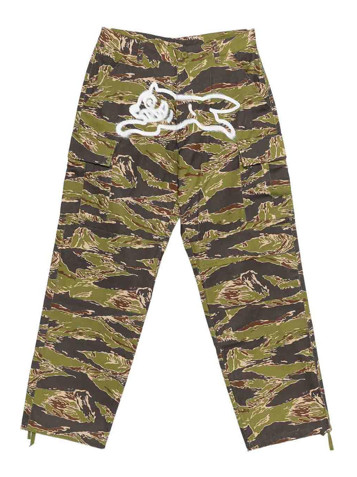 ブラウン/グリーン迷彩柄ロゴグラフィックサイドカーゴポケットジップフライドローストリングヘム