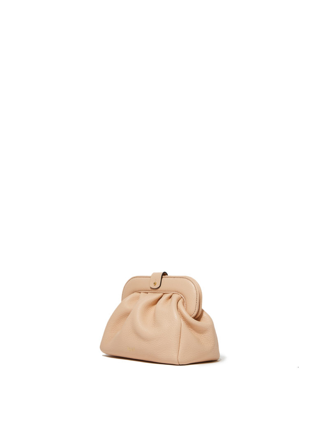 レザー製のクラッチ、ドレープシルエットの台形デザインには、マグネットとツインのクロージャーと取り外し可能なショルダーストラップが付いています。サイズ:高さ15 x l 20 x p 12 cm