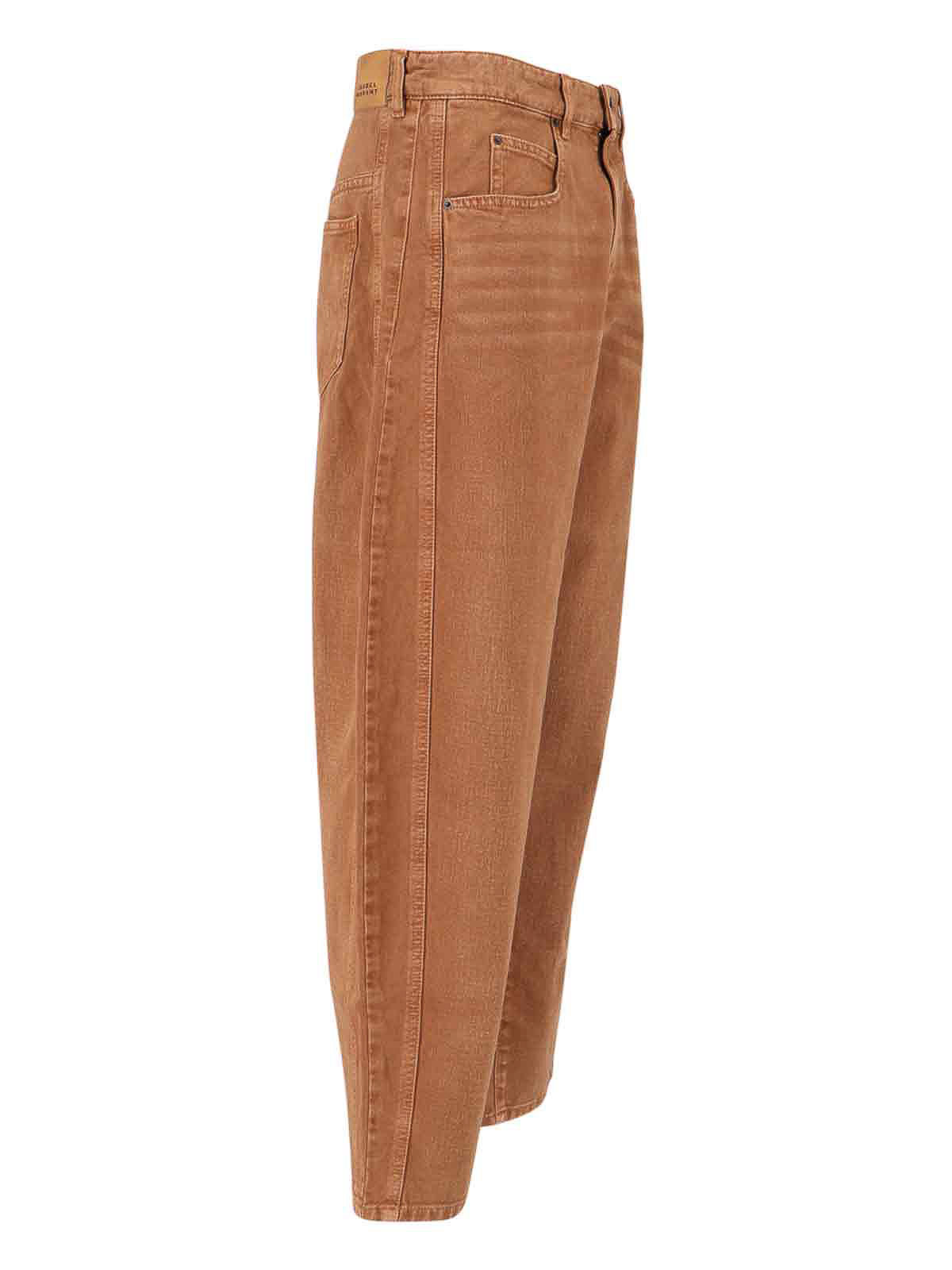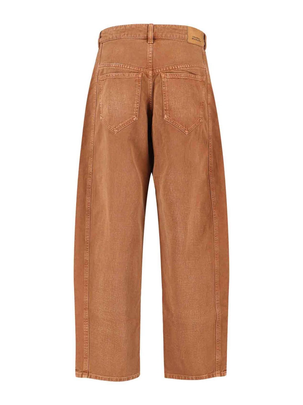 ストレートジーンズ Isabel Marant、ブラウンコットンミックス、インシュアードウォッシュ、ハイウエスト、ベルトパッサーベイ、ボタン留めとファスナー、5ポケットデザイン、レトロなロゴパッチ、ストレートレッグ。