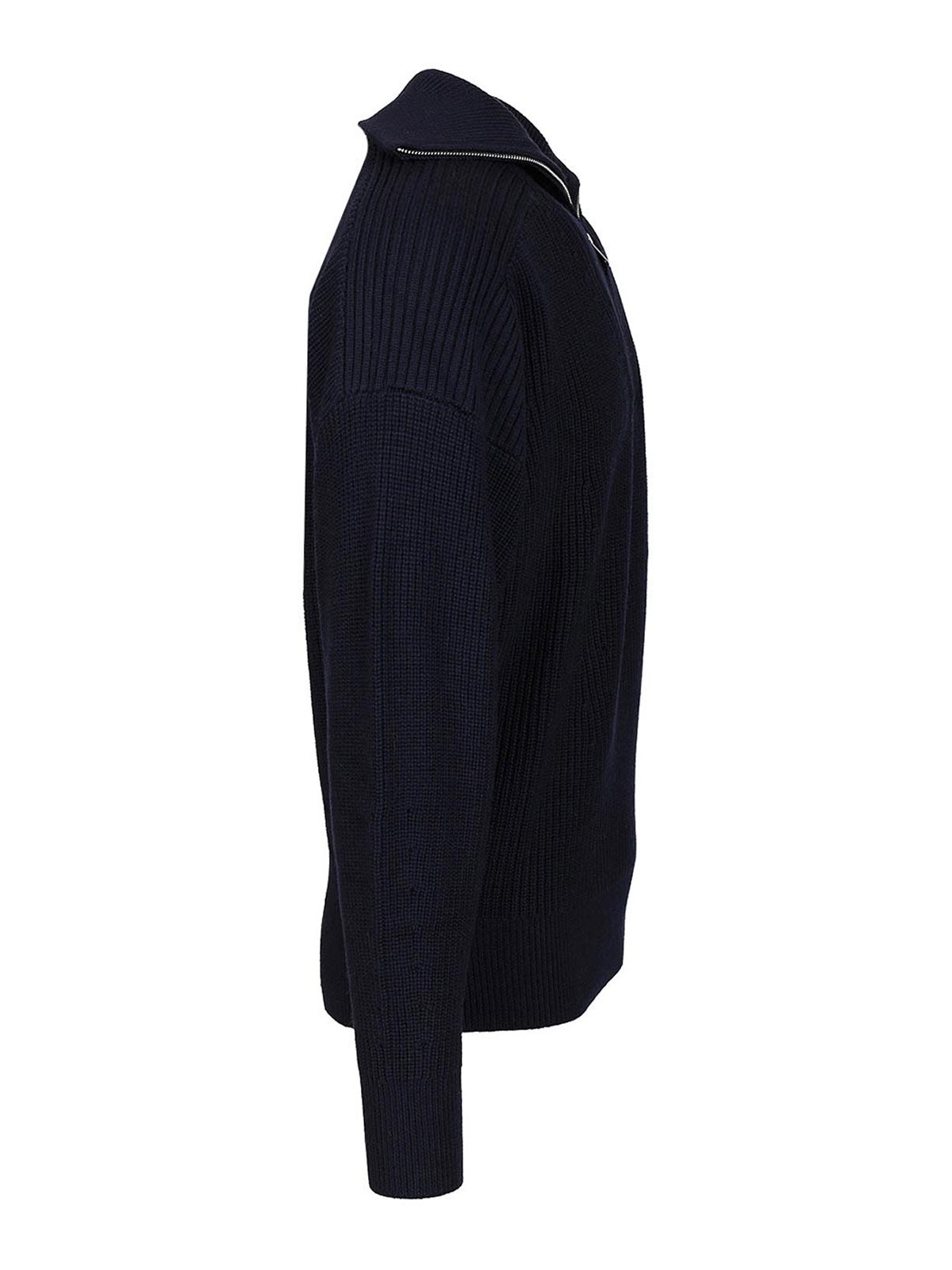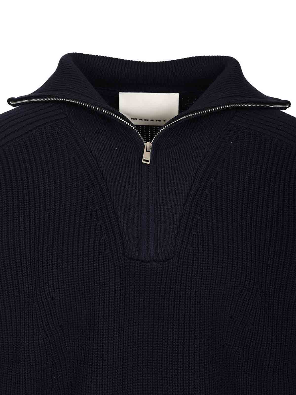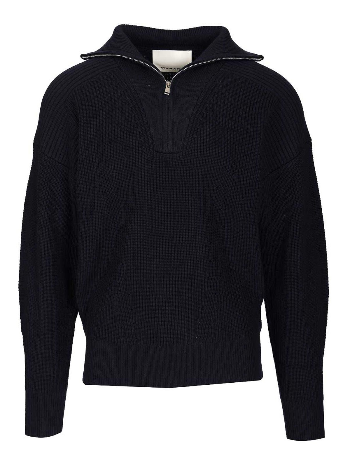 Marantのベニーリブ編みメリノウールジップアップタートルネックセーターは、リブ編みのトリムと背面にトーンオントーンのマランロゴの刺繍が特徴です。