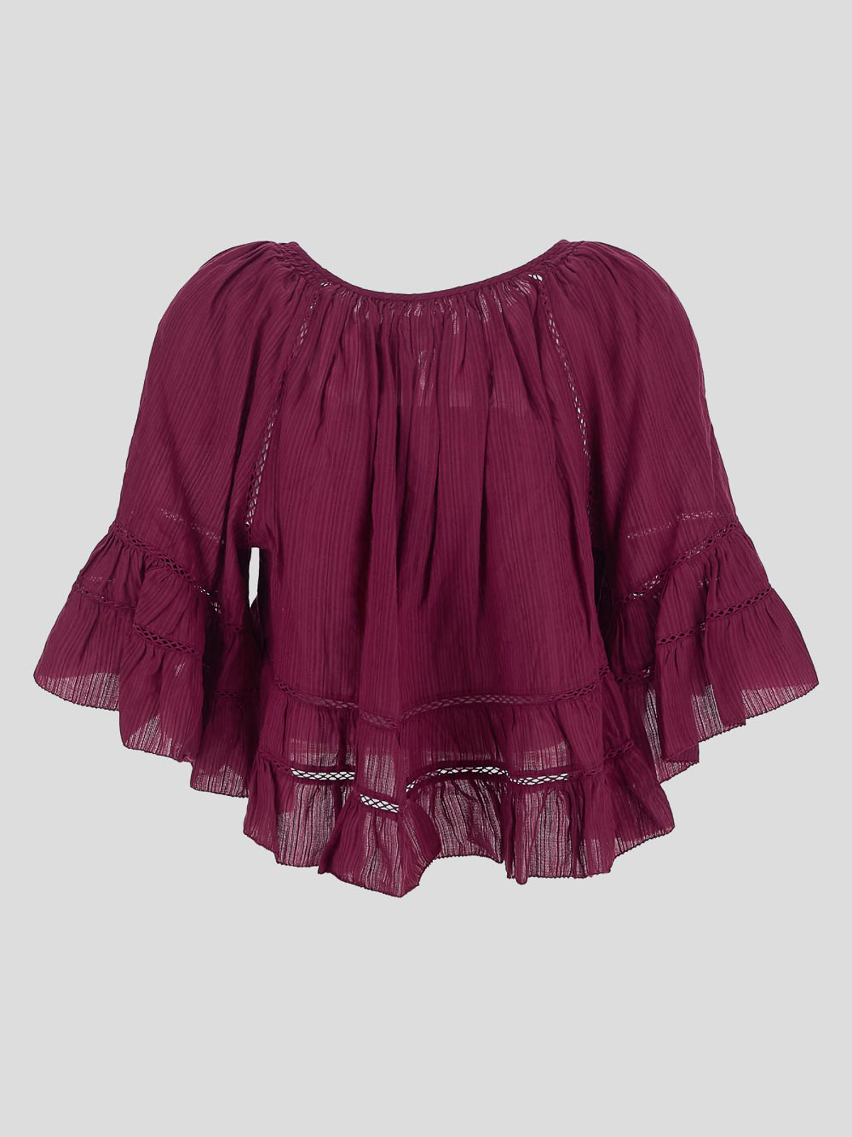 Isabel marant エトワールリアムトップス、オーキッドコットン/リネン混紡フラウンス付き
