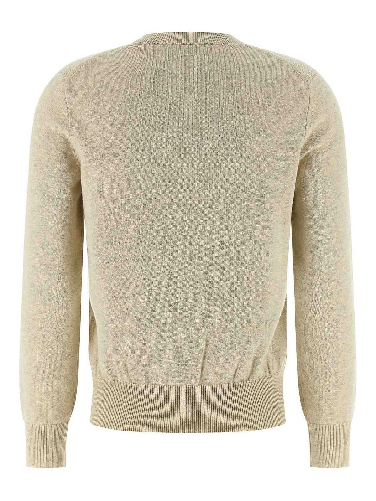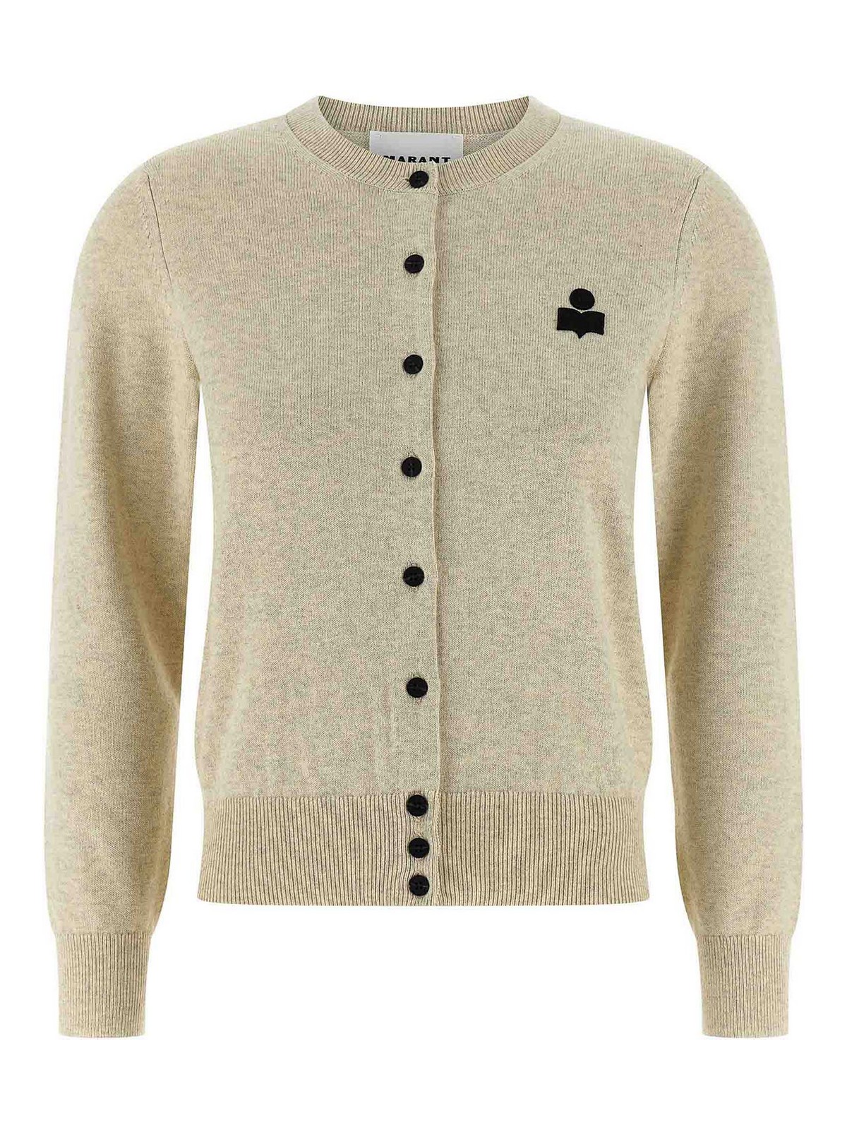 コットン、ビスコース、ウールのメランジブレンドのmona'セーター、ロゴパッチ、フロントボタン留め、クルーネック、ロングカフスリーブ。
