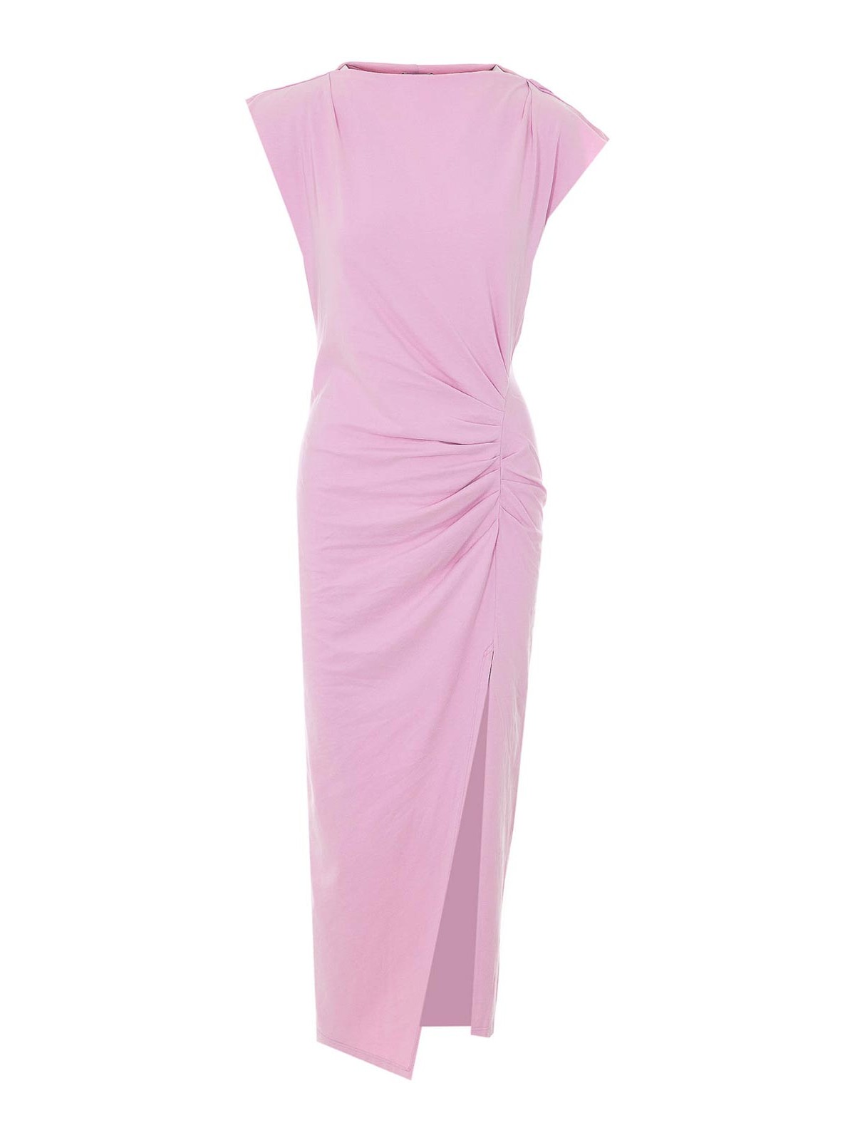 Isabel marant etoile ピンクナデラドレス、ボートネック、補強ショルダー、フリルディテール、タイトフィット、スプリットディテール