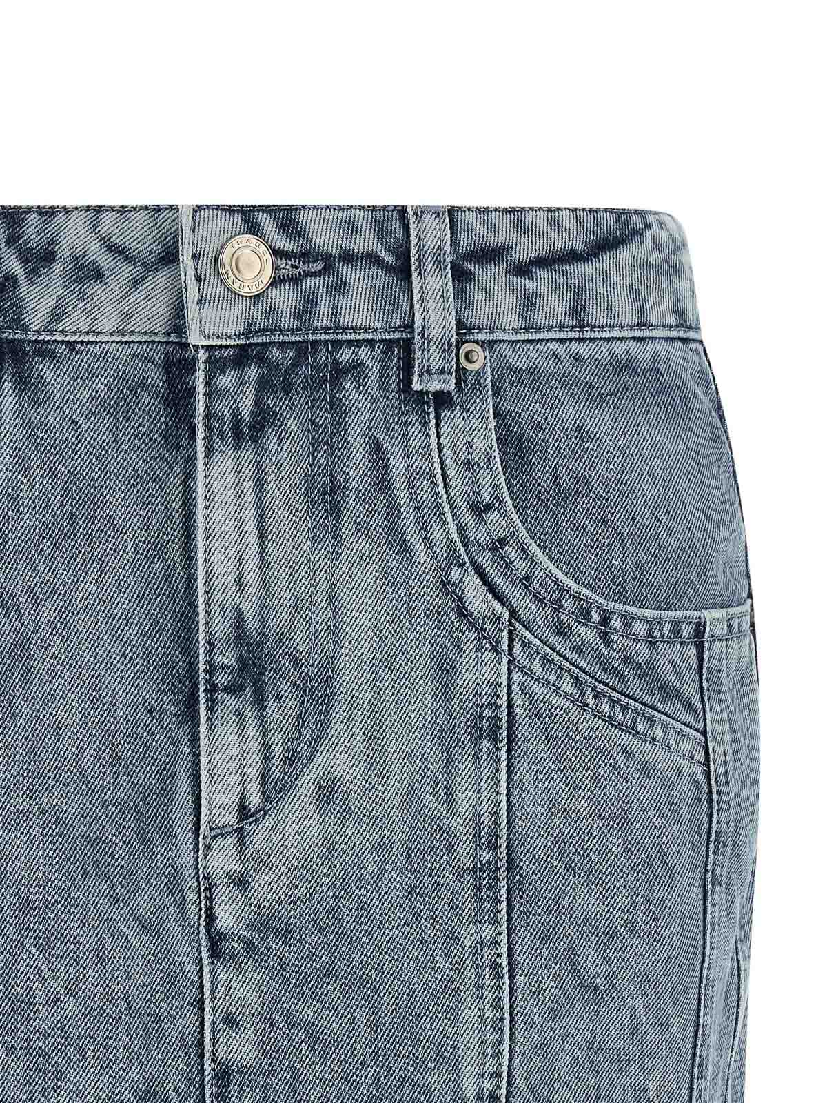 juana' コットンデニムミニスカート、フロントファスナーとボタンクロージャー、ポケット5つ、バックレザーロゴタグ。