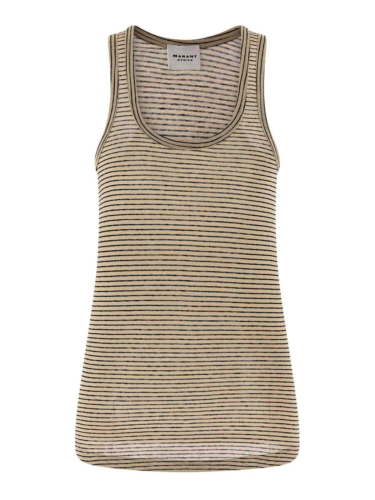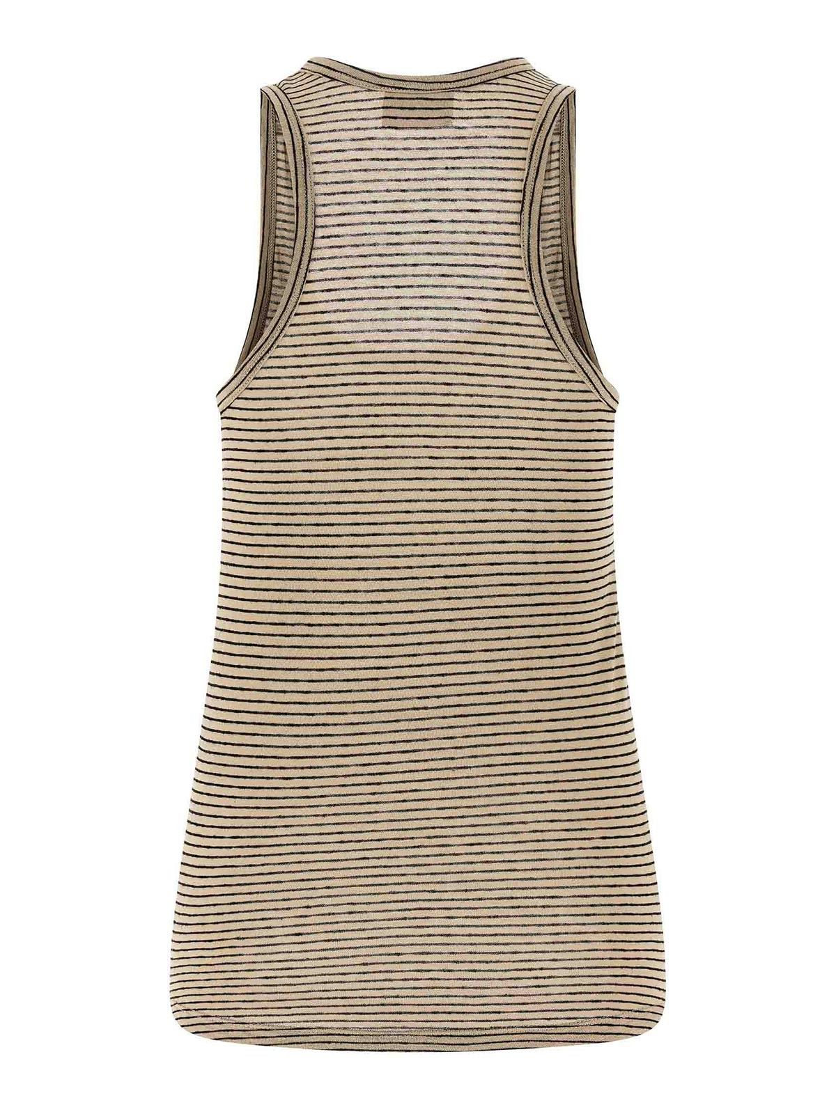 Thea' のストライプ柄コットンリネンタンクトップ。ラウンドネックライン付き。