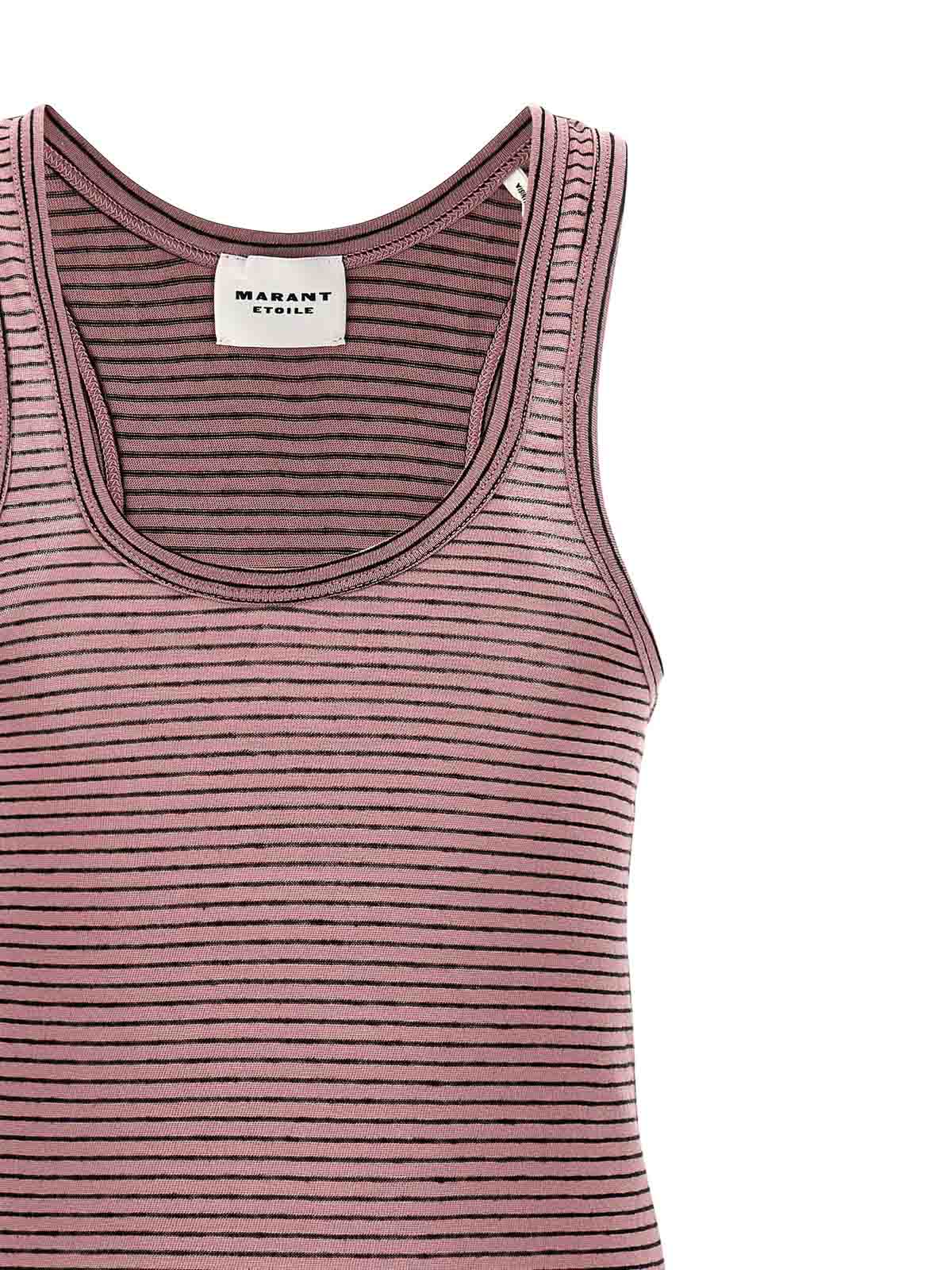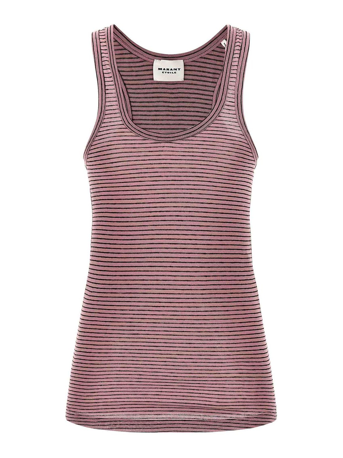 Thea' のストライプ柄コットンリネンタンクトップ。ラウンドネックライン付き。