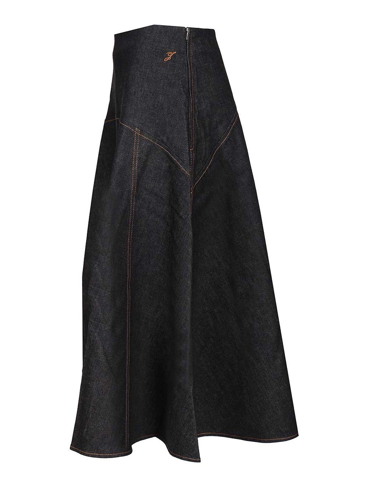 フレアマキシスカート、ハイウエスト、フレッシュ、ポプリン J、インビジブルジッパーに刺繍入り
