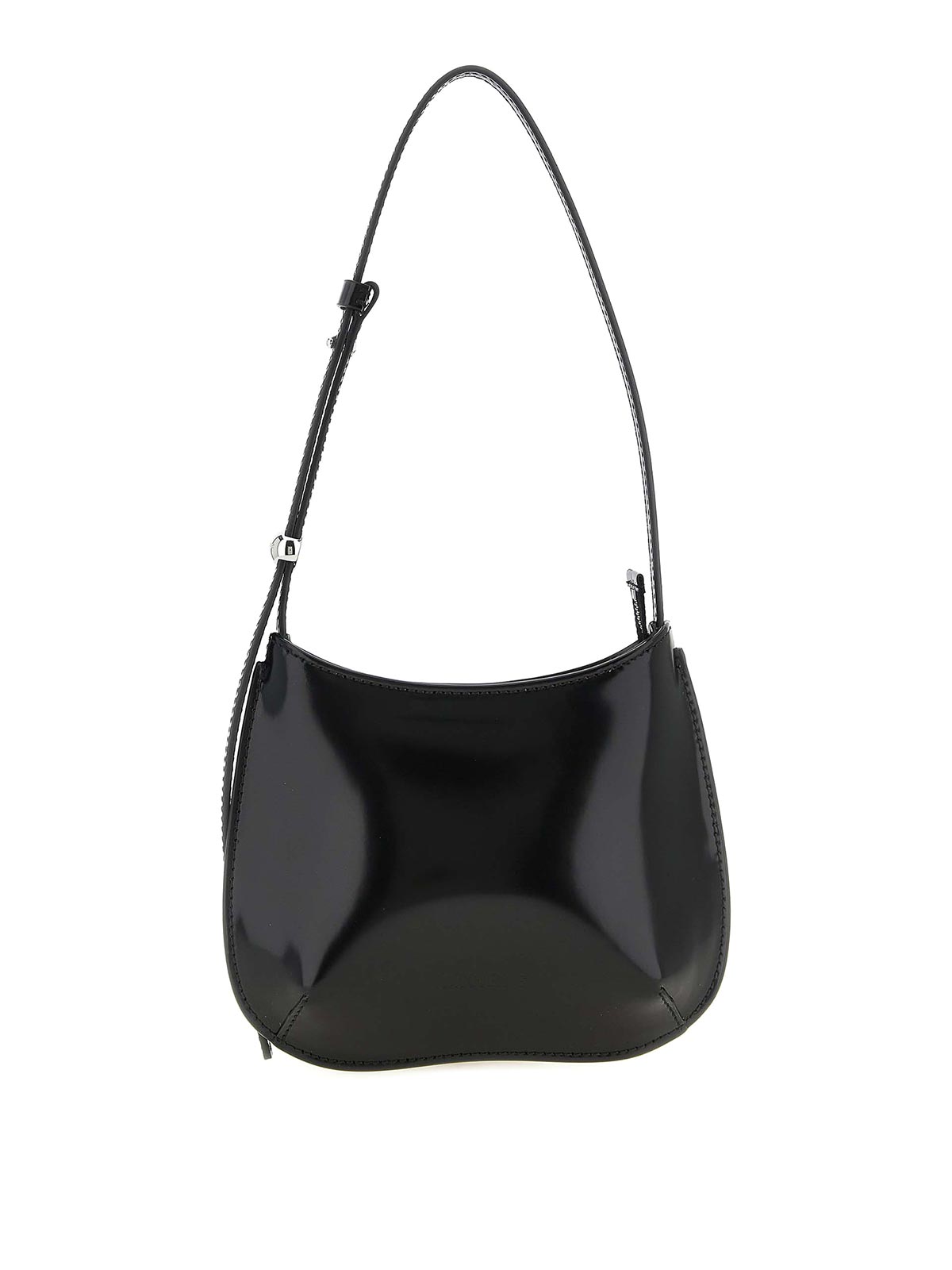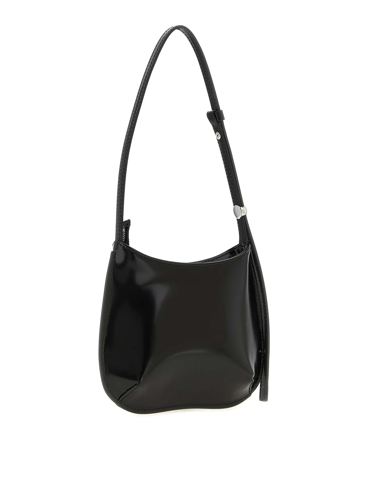 le petit bisou' 光沢レザーショルダーバッグ、前面にエンボス加工ロゴ、上部にファスナー開閉、調節可能なハンドル付き。