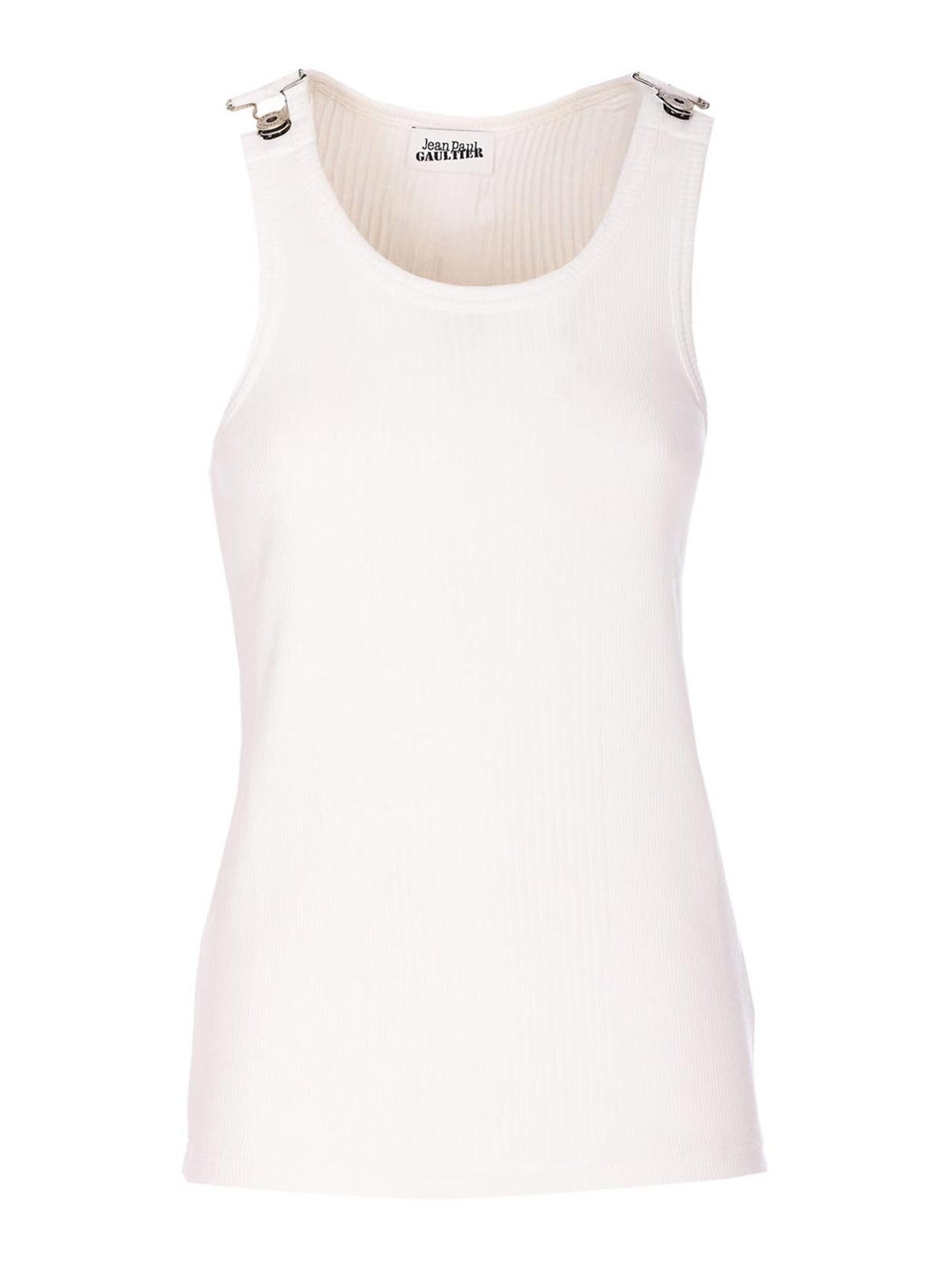ジャンポールゴルチエホワイトタンクトップ、バックルクロージャー、ノースリーブ