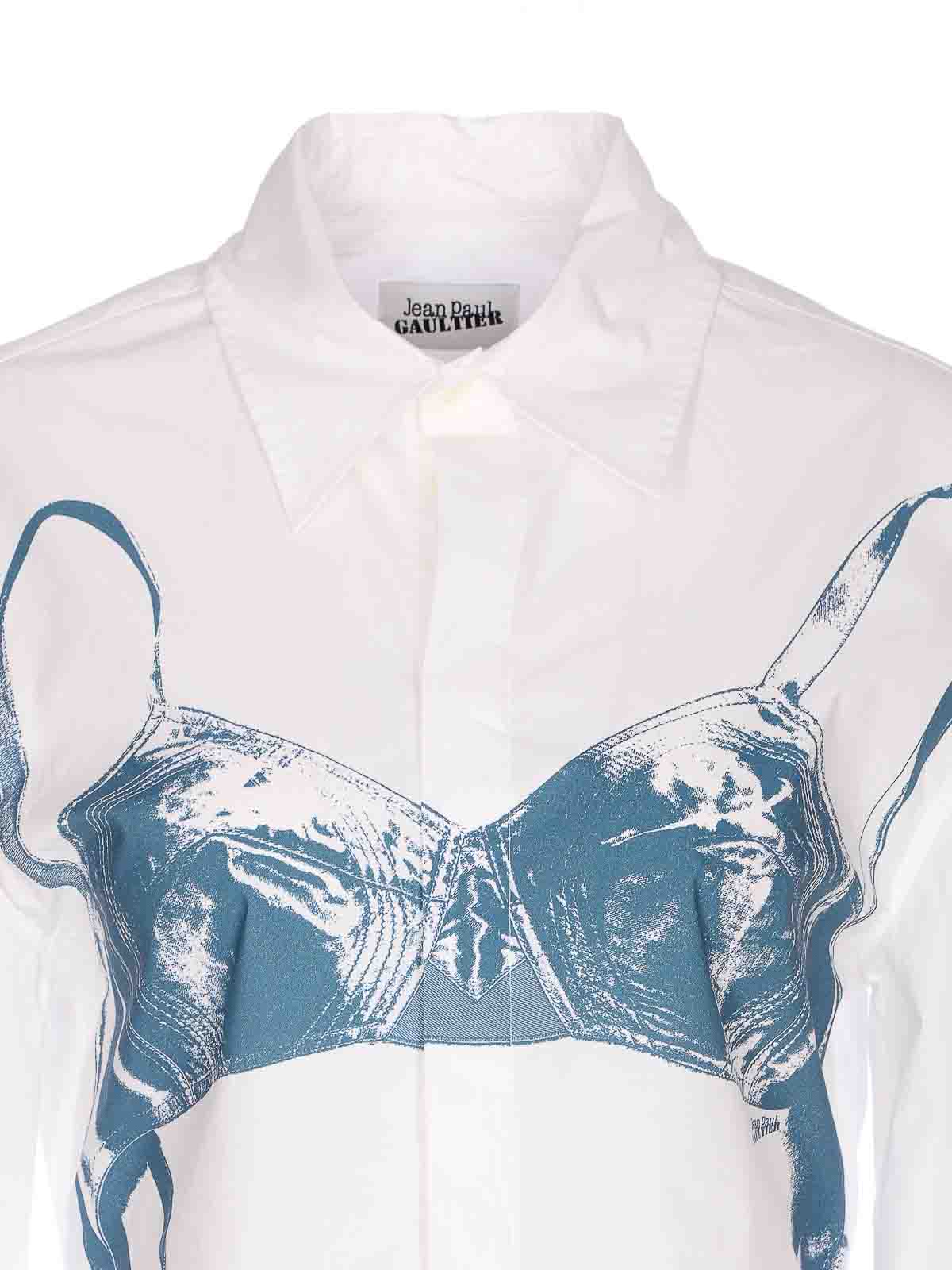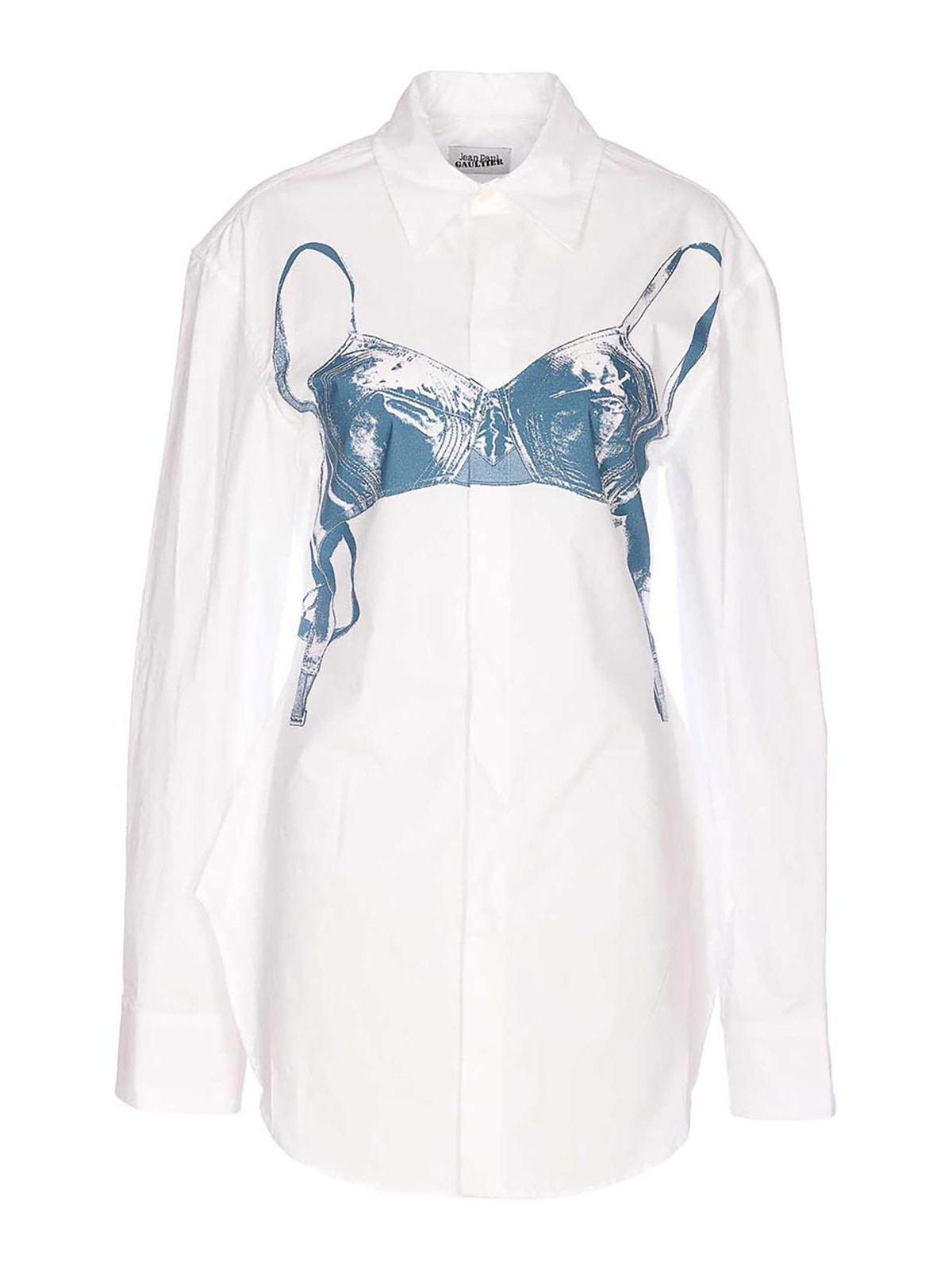 Jean Paul Gaultier ホワイトシャツ、フロントボタン留め、レギュラーカラー、ロングスリーブ、ボタンオンカフス、プリント