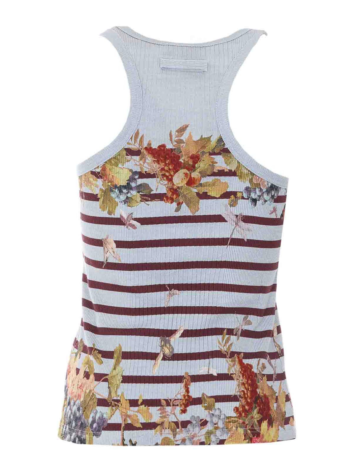 ジャンポールゴルチエライトブルータンクトップ、バックルディテール、花柄、ノースリーブ