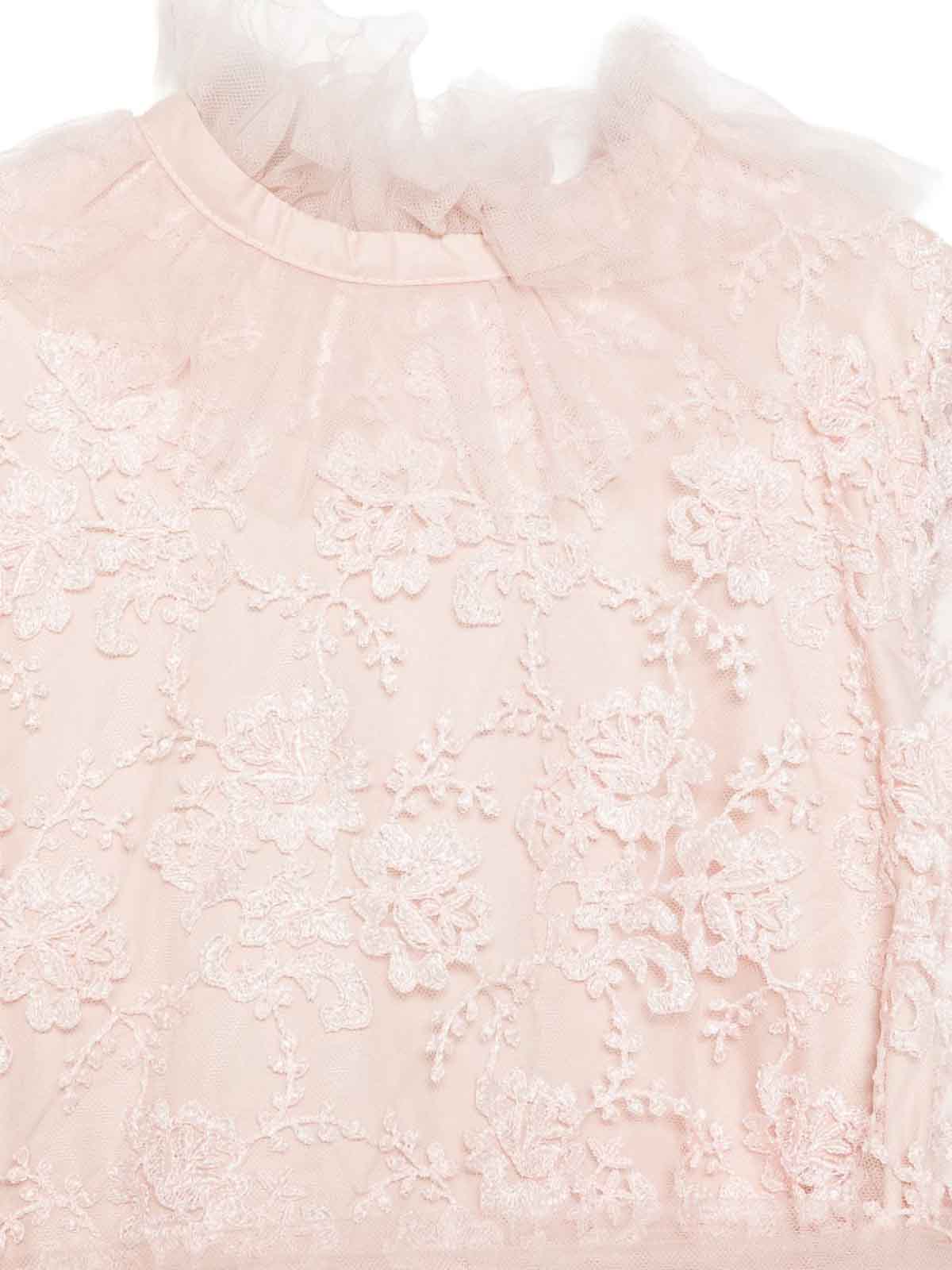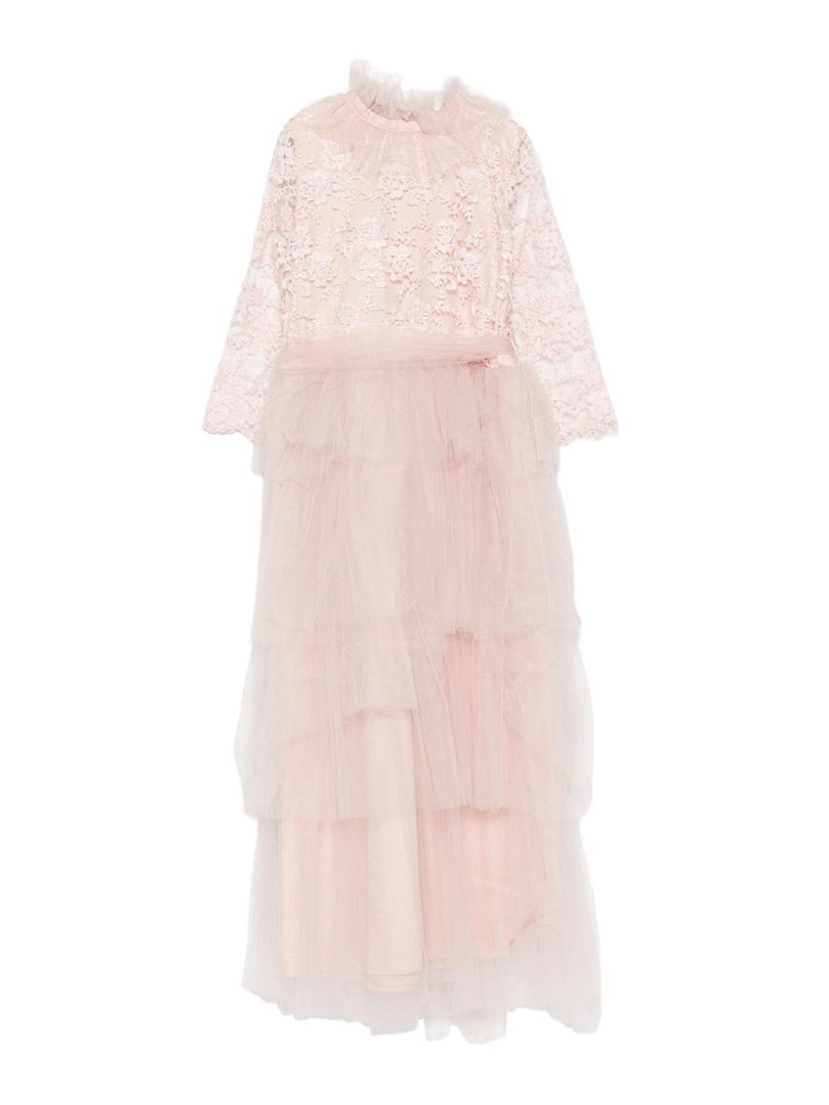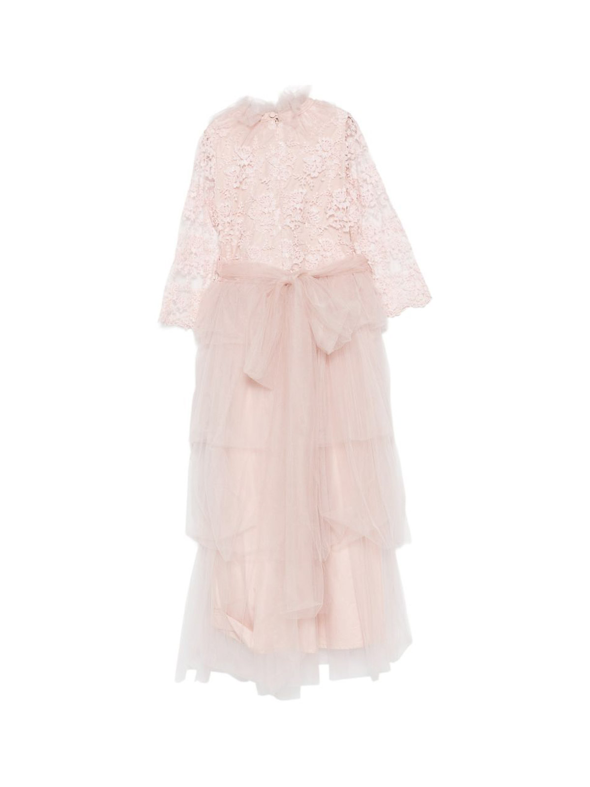 レイヤードスカートとリボンが付いたチュールとレースのドレス