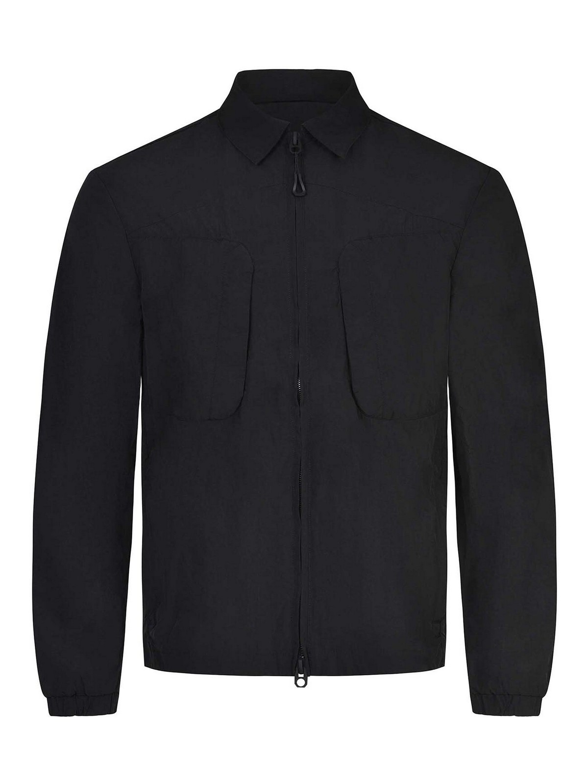 ブラックポリアミド製のJg1シャツ。グラデーションエフェクト。クラシックカラー。ダブルスライダージッパークロージャー。伸縮性のある袖口付き長袖。ジッパー付き胸ポケット。ジッパー付きサイドポケット。100% ポリアミド。