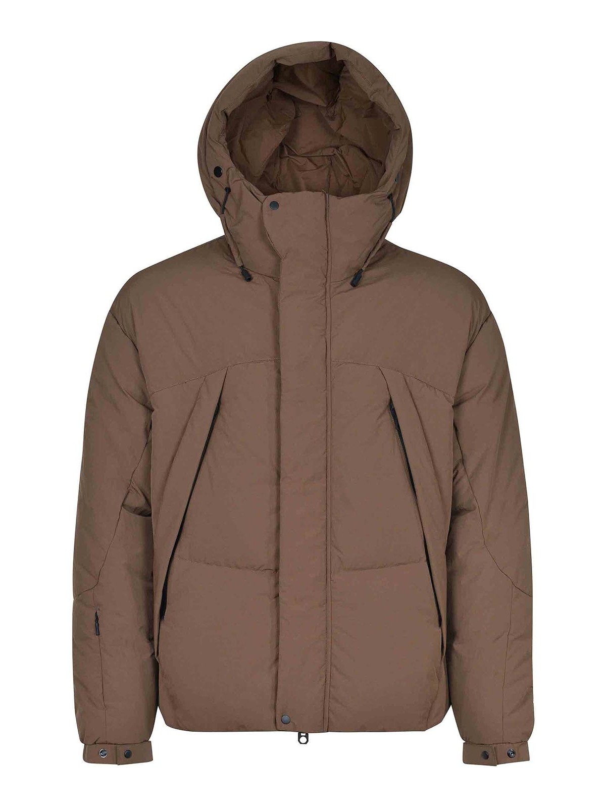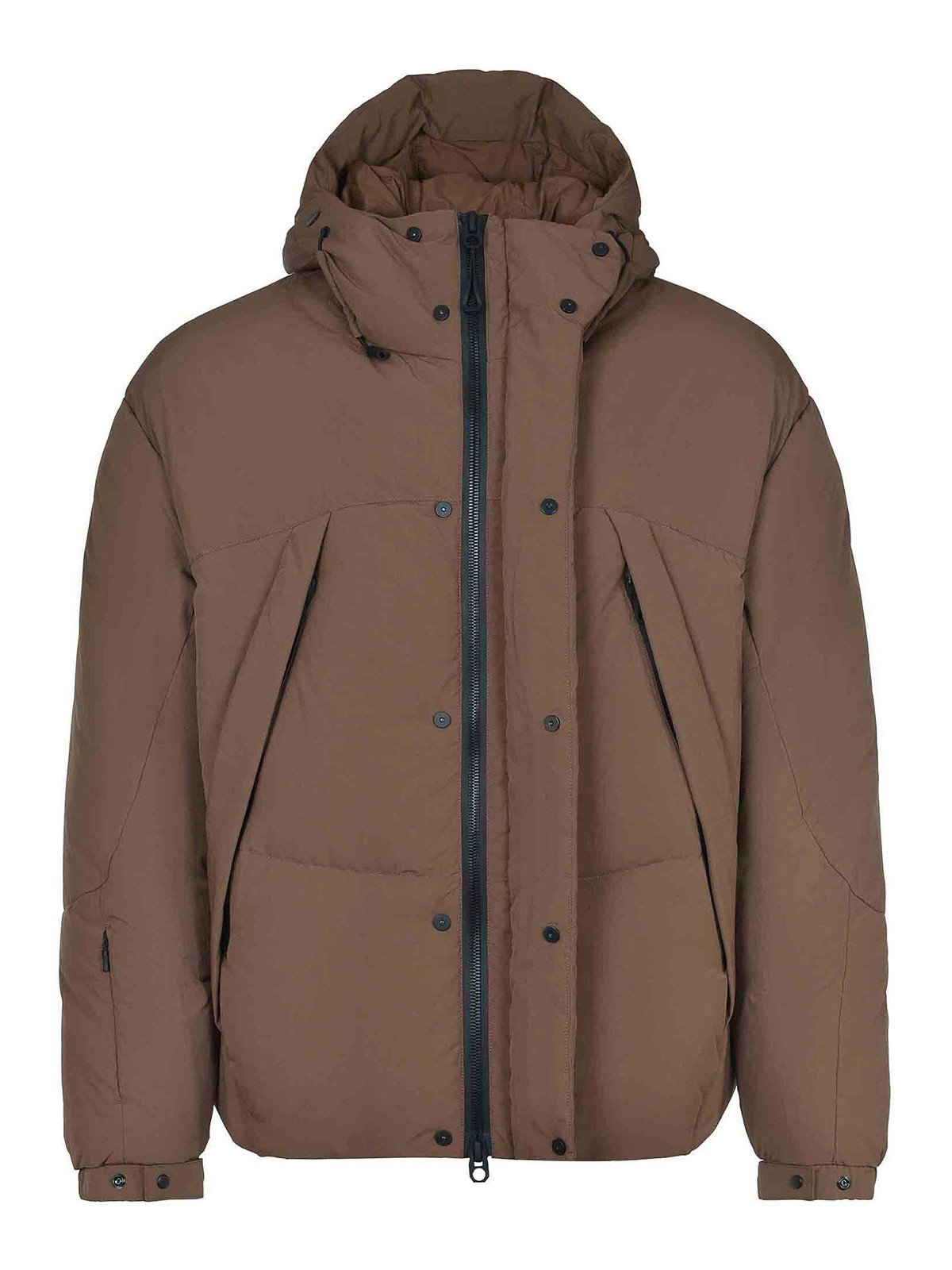 襟にジッパーが付いた調節可能で取り外し可能なフード。ボタンとダブルスライダージッパー付きのクロージャー。前面に大きなポケット。長袖。伸縮性があり調節可能な袖口。右袖にジッパーポケット。背中中央にジッパーポケット。防水。100% ポリアミド。