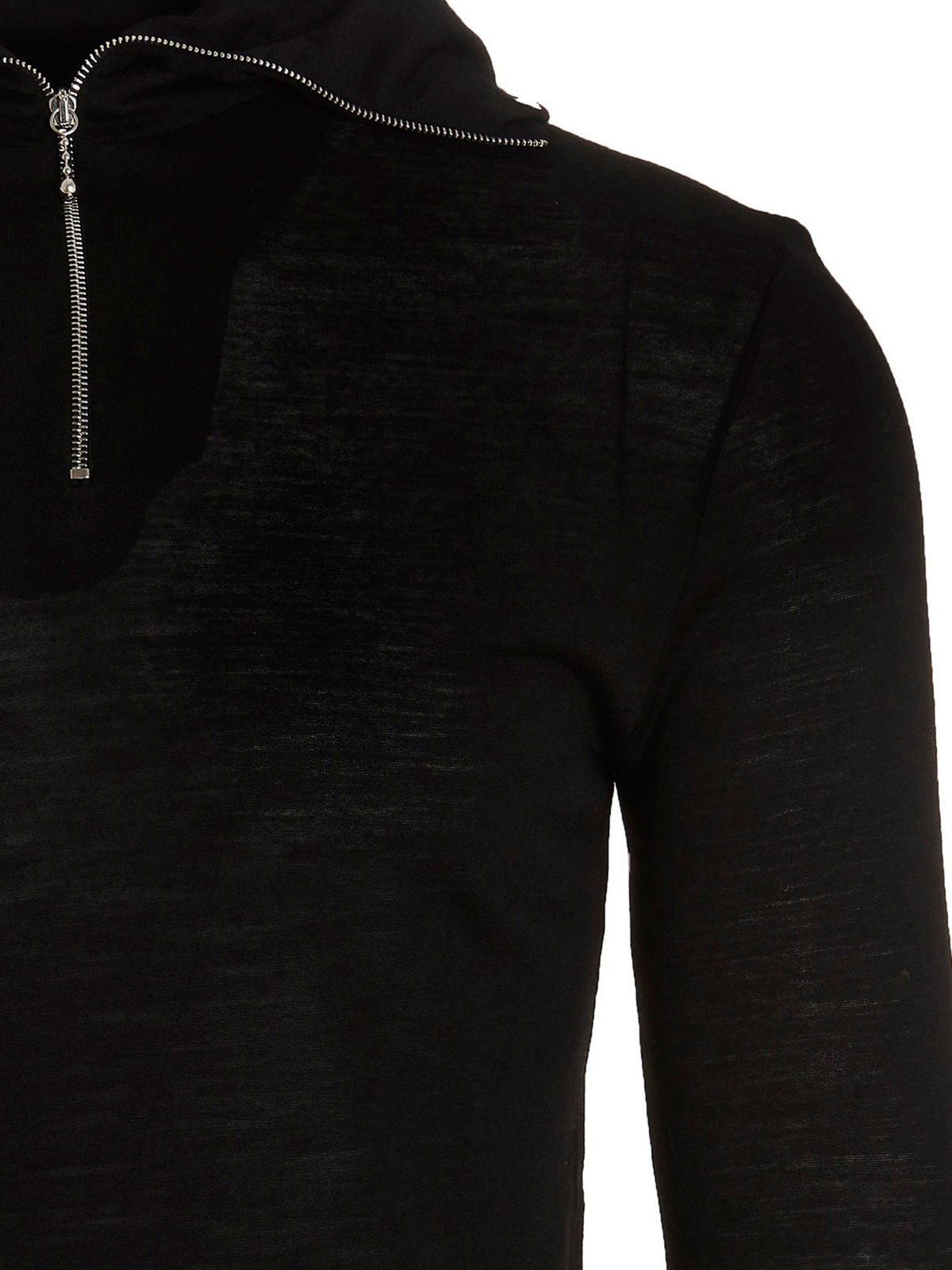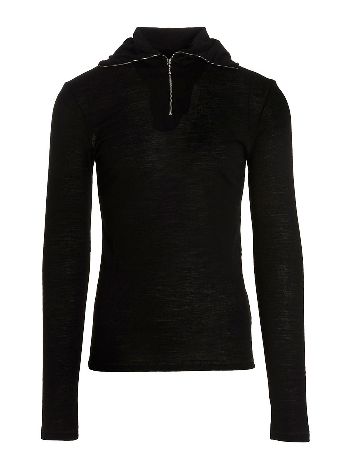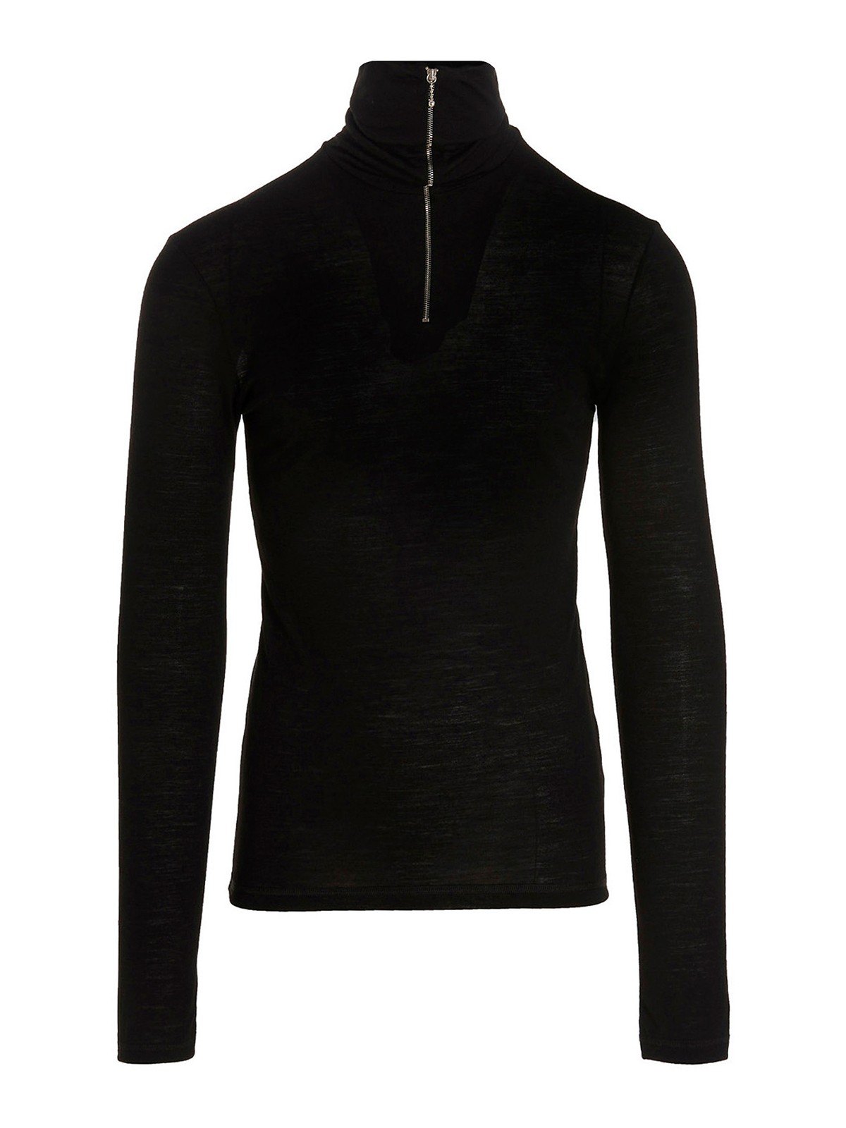 テクニカルウール混紡セーター。ハイネック、ハーフジップ、ロングスリーブ。
