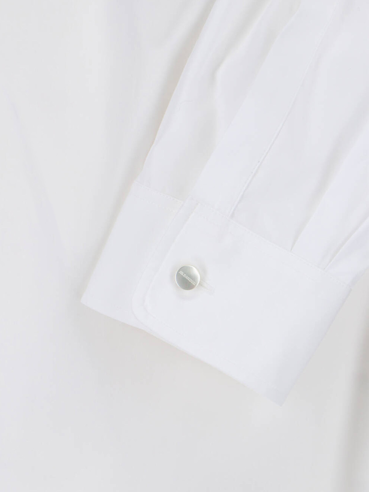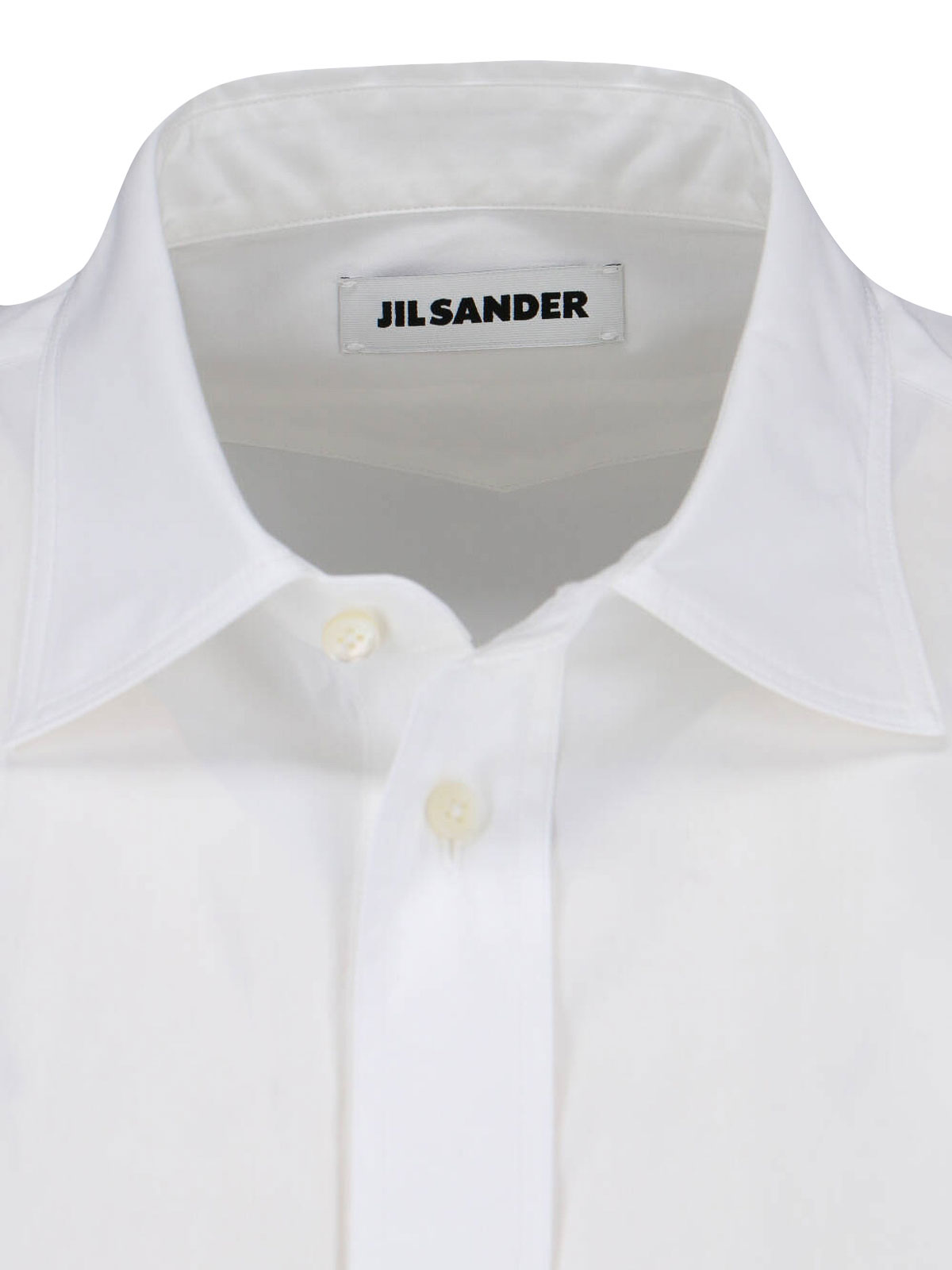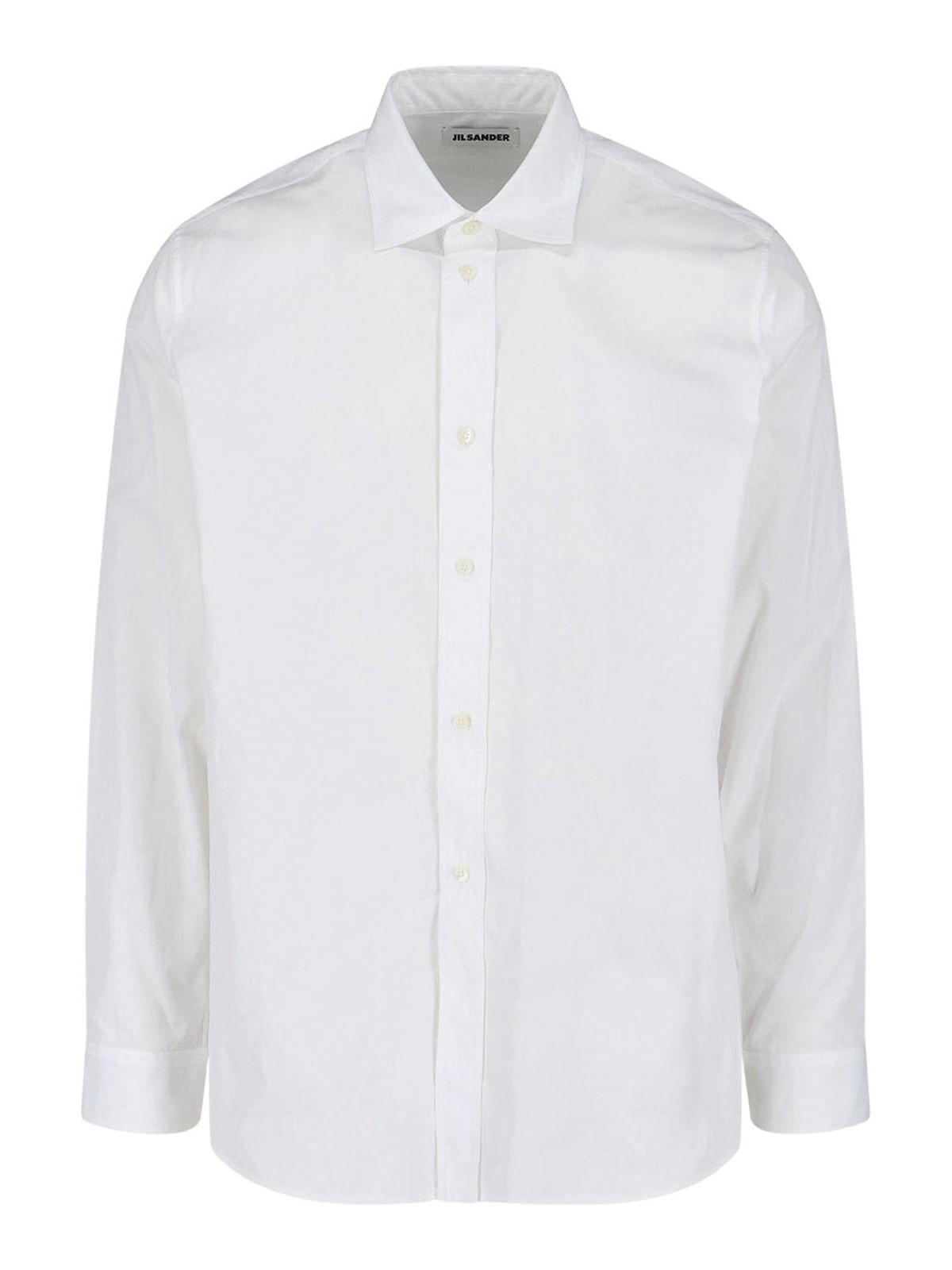 ジルサンダーコットンシャツ、ホワイト、襟、ボタン留め、長袖。